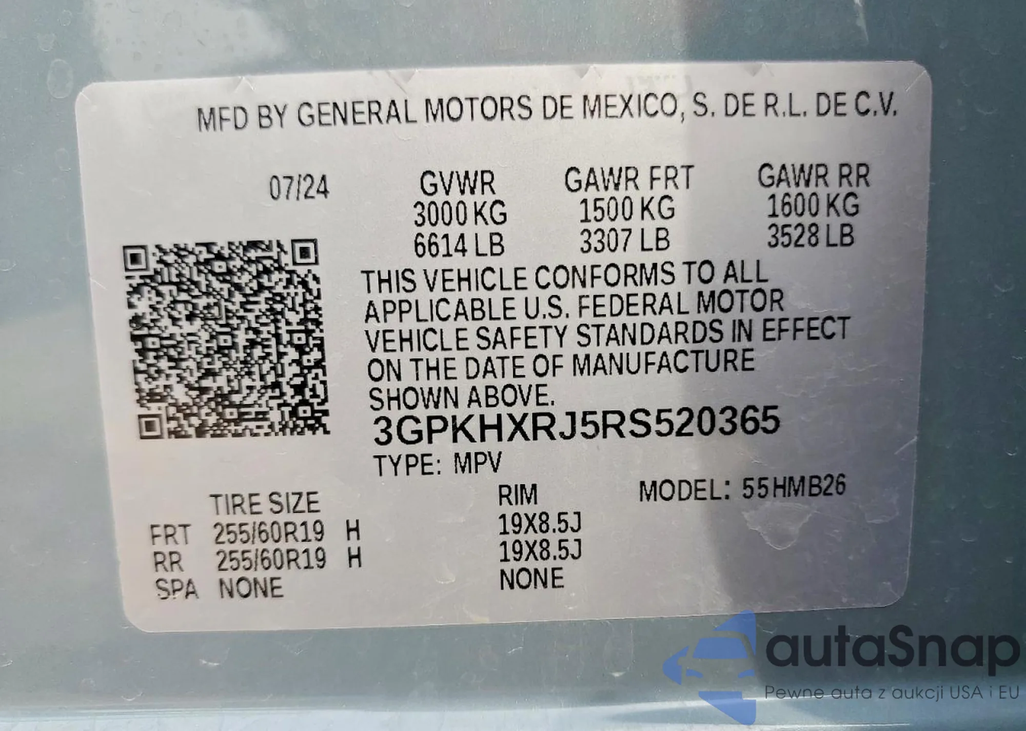 • VIN 3GPKHXRJ5RS520365