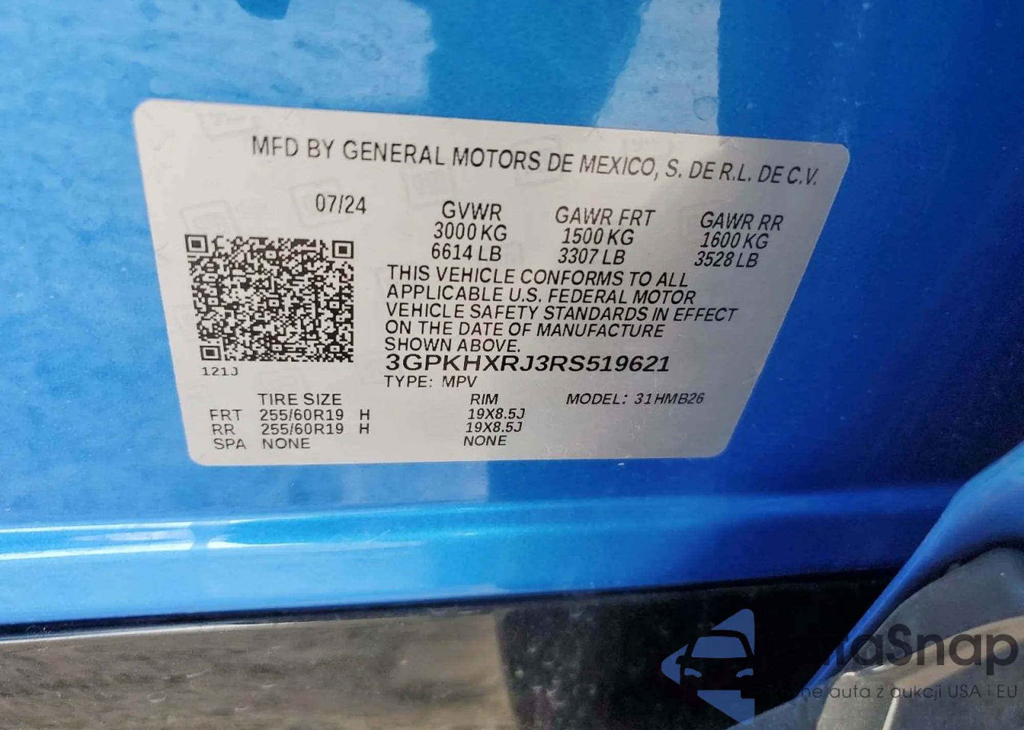 LOT: 92872425 VIN: 3GPKHXRJ3RS519621