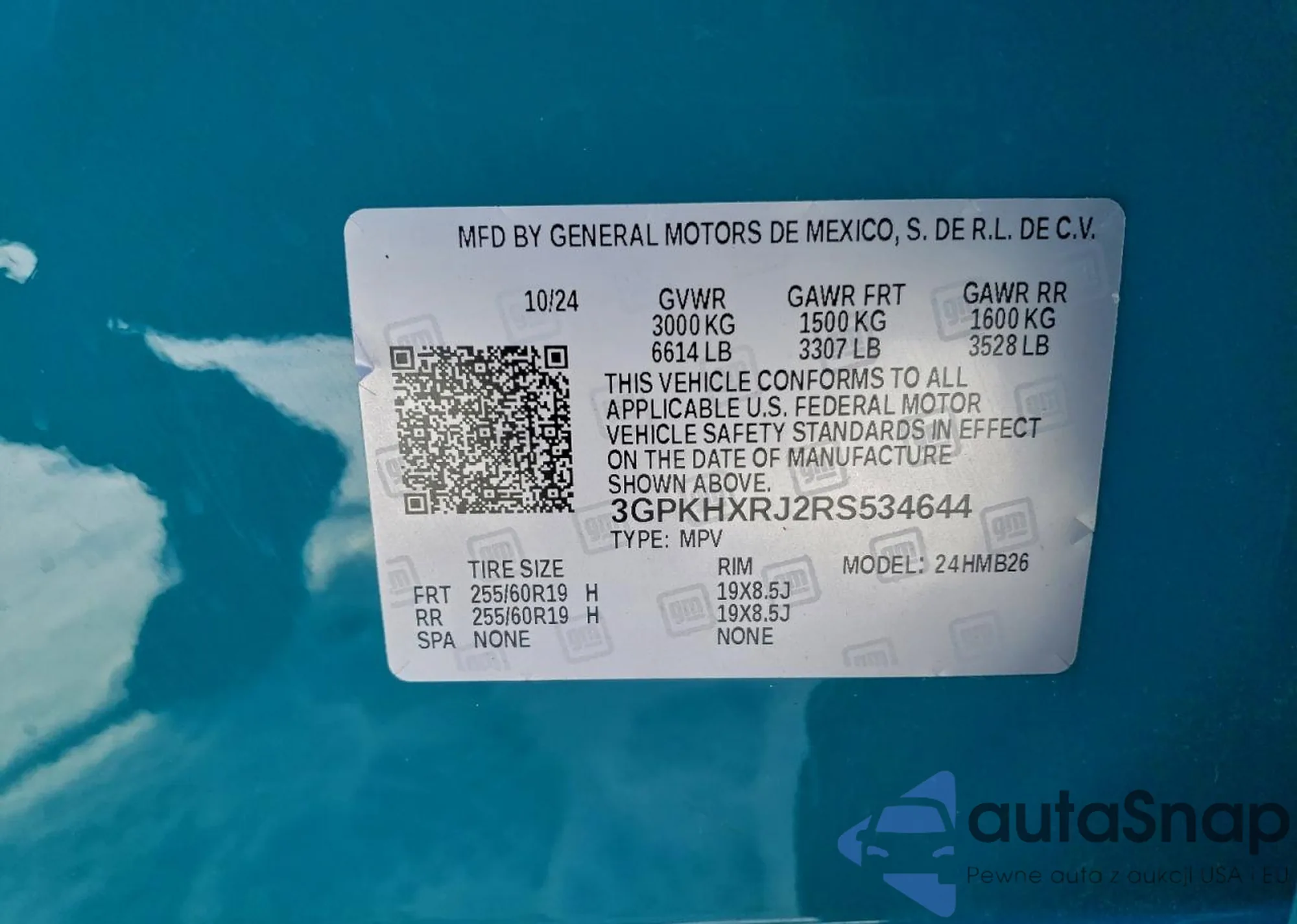 LOT: 43647191 VIN: 3GPKHVRJ2RS528265