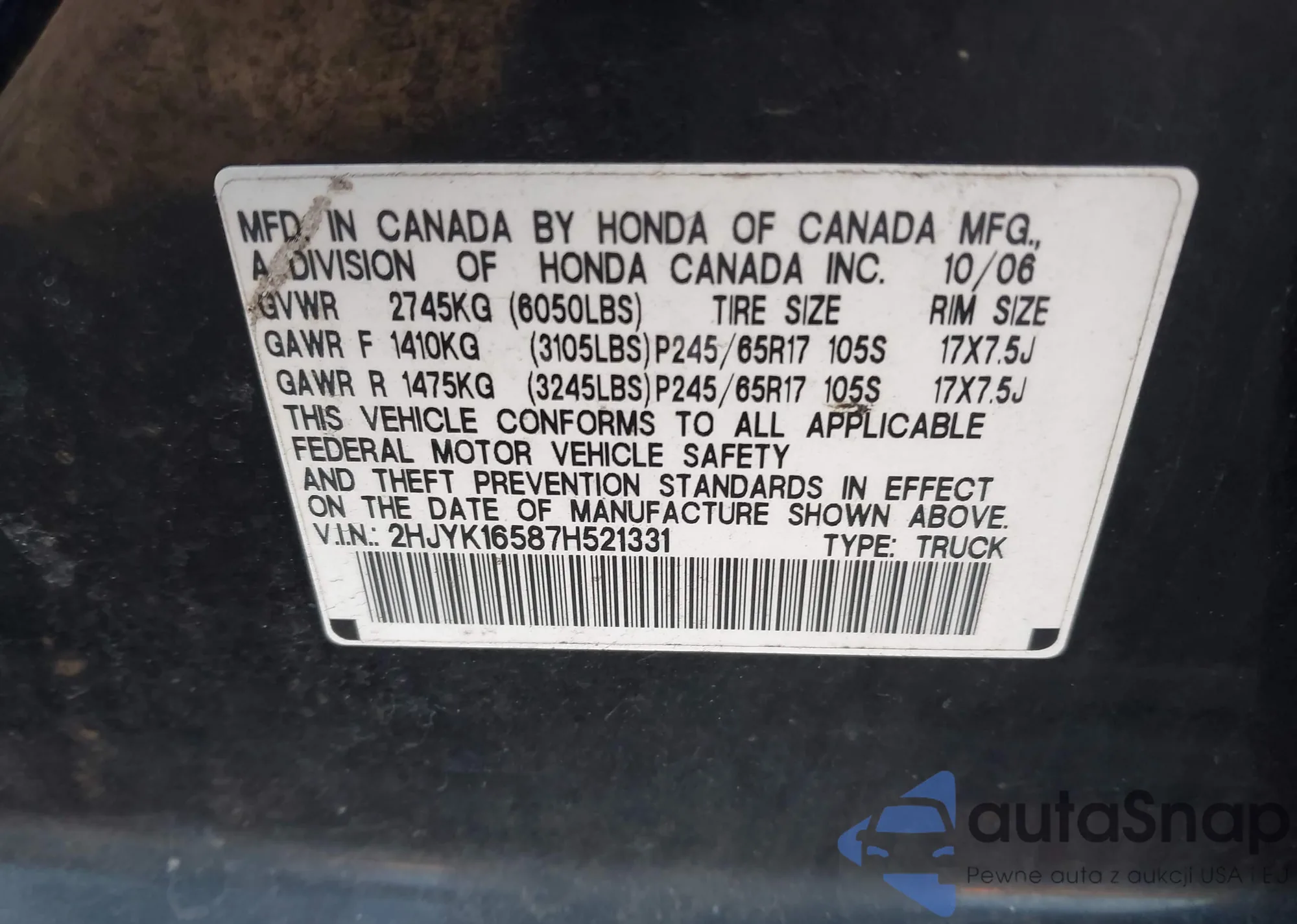 • VIN 2HJYK16587H521331