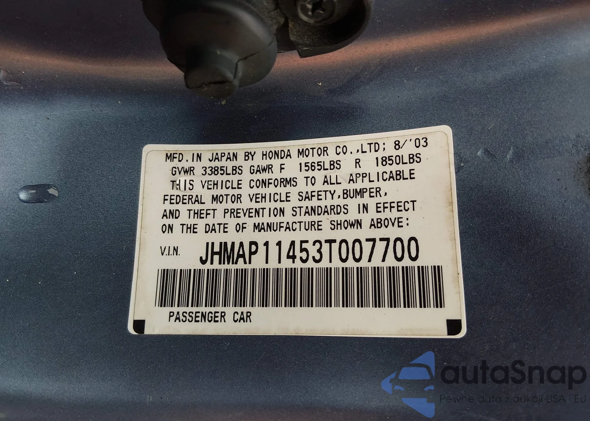 LOT: 44483377 VIN: JHMAP11453T007700