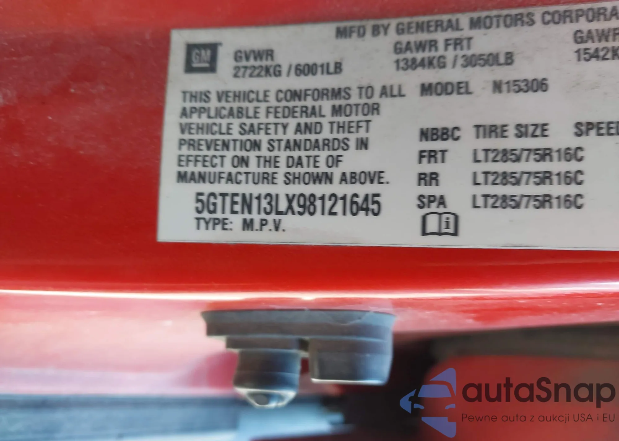 • VIN 5GTEN13LX98121645