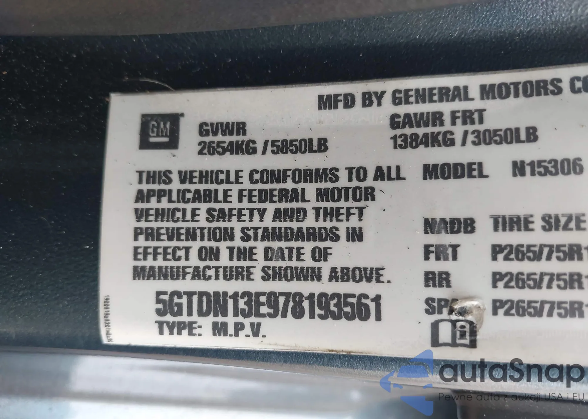 • VIN 5GTDN13E978193561