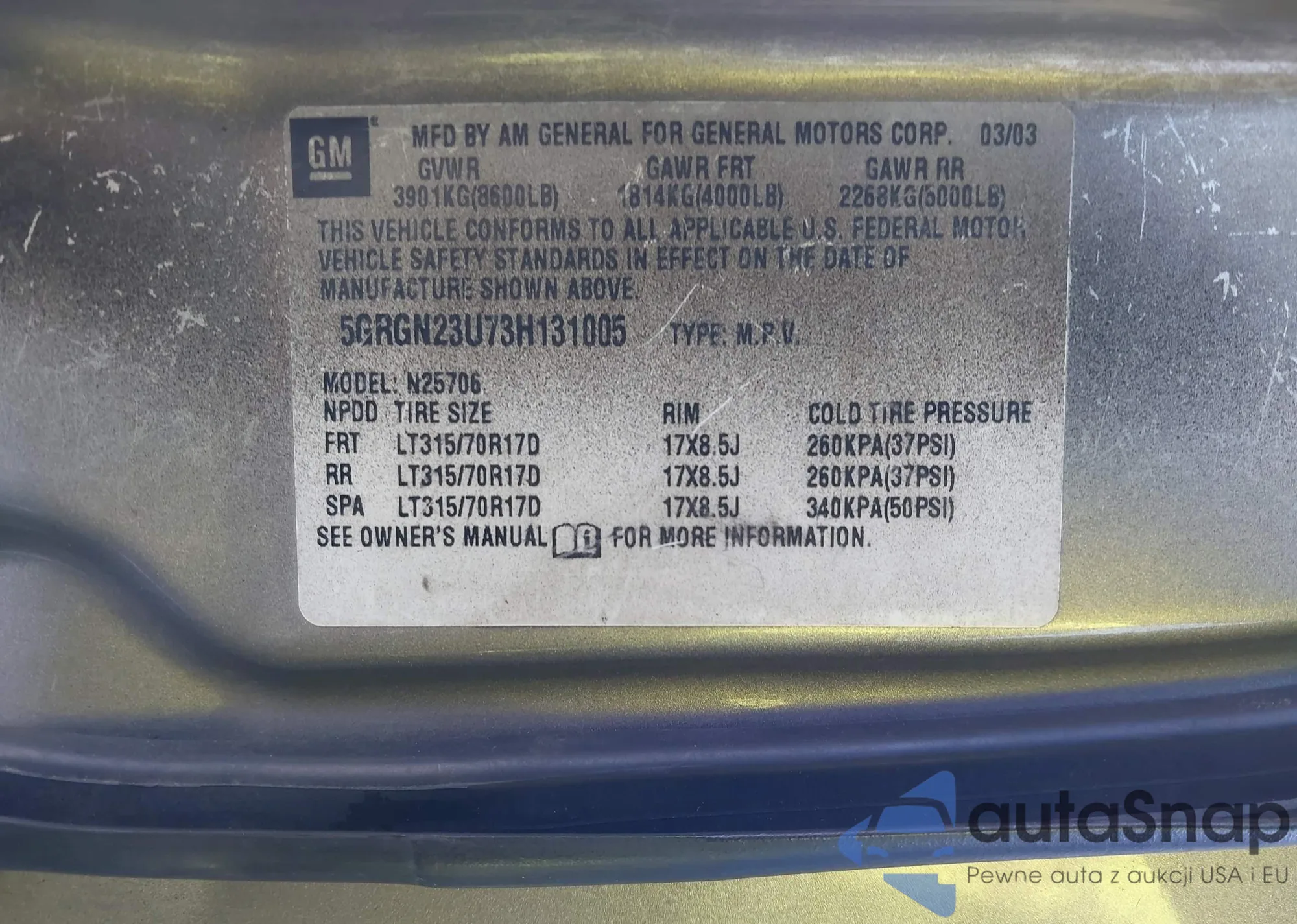 • VIN 5GRGN23U73H131005