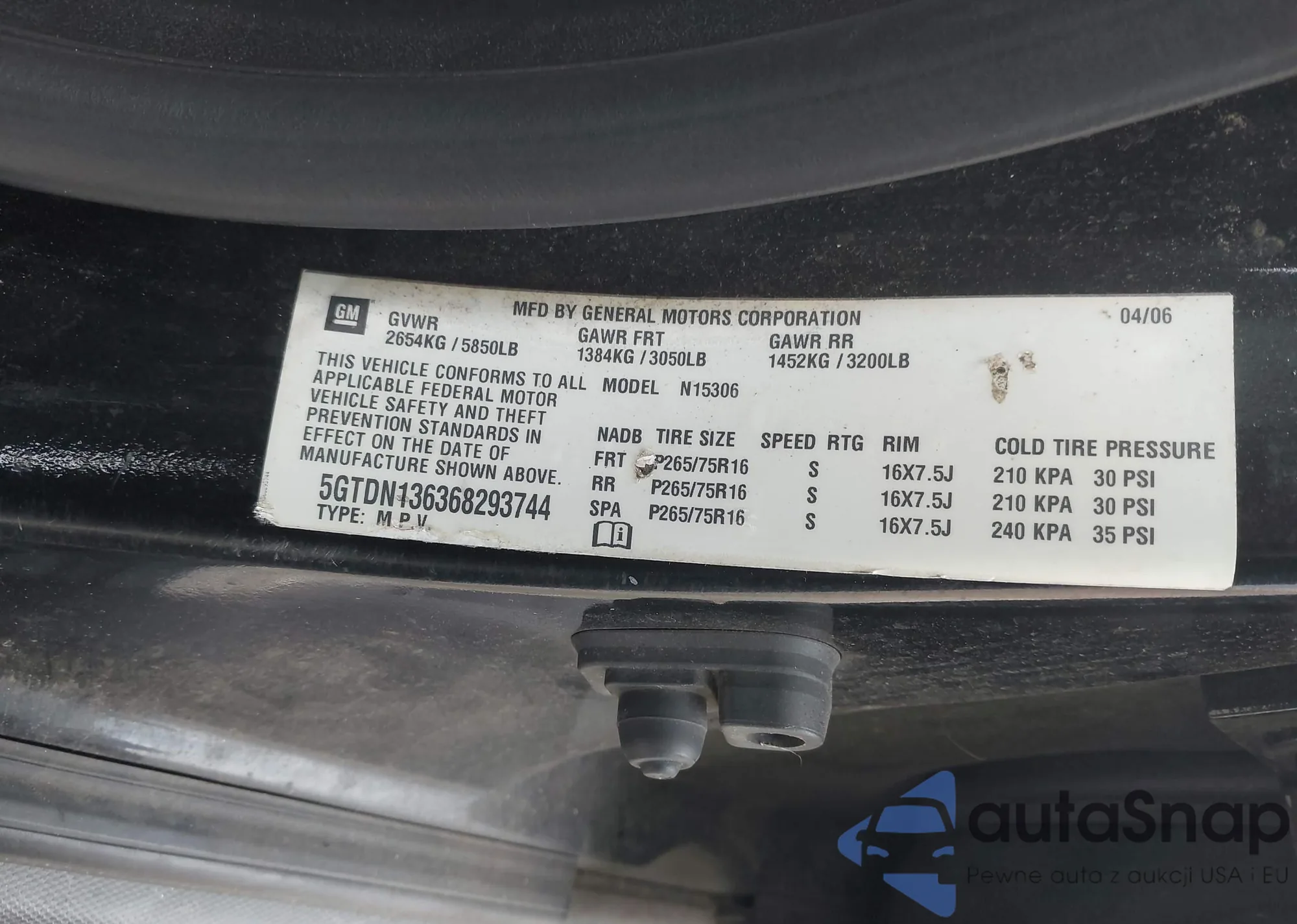 LOT: 43735421 VIN: 5GTDN136368293744