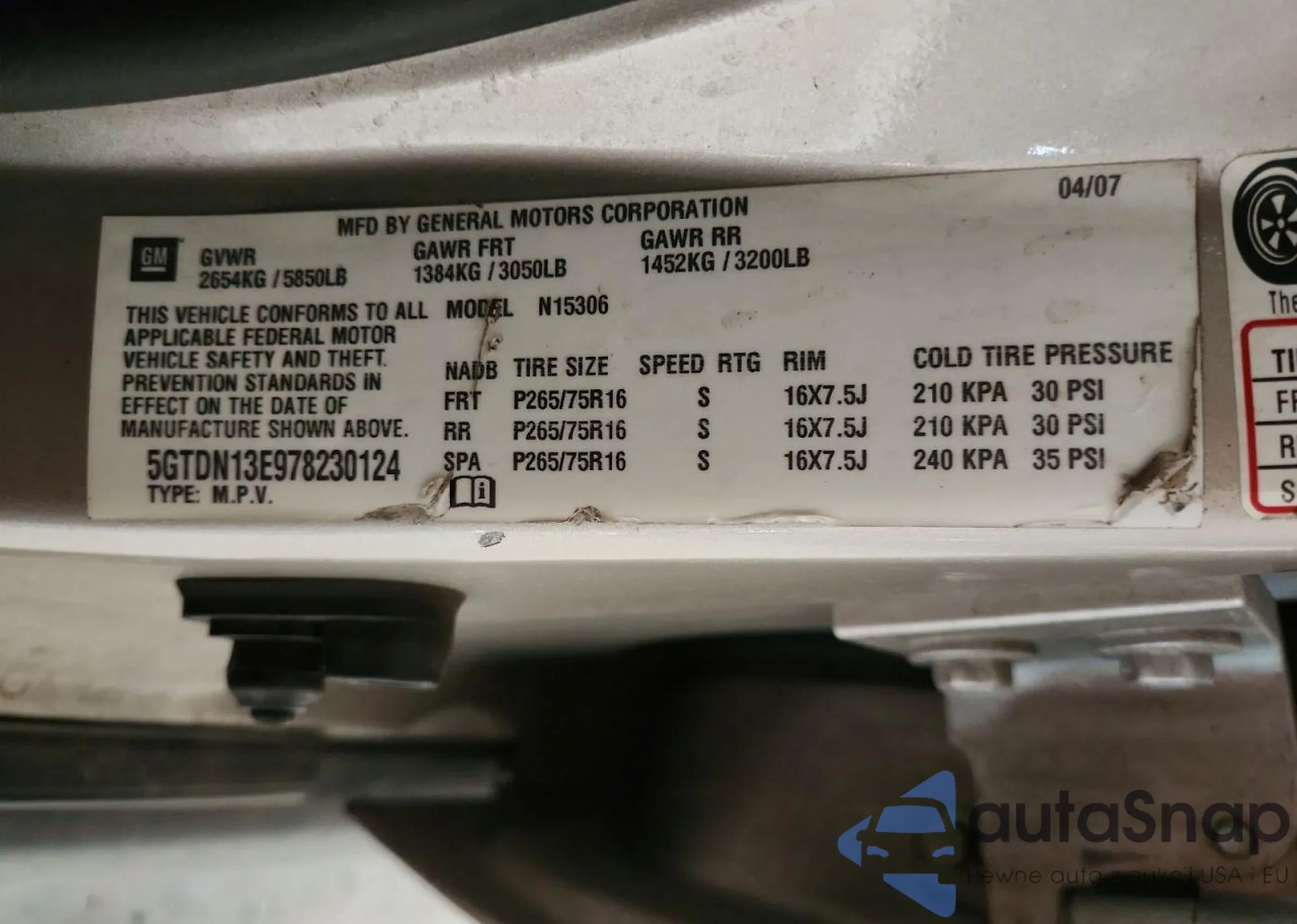 • VIN 5GTDN13E978230124