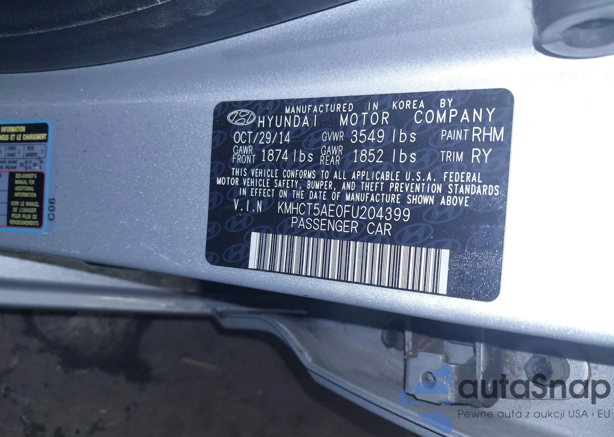 • VIN KMHCT5AE0FU204399