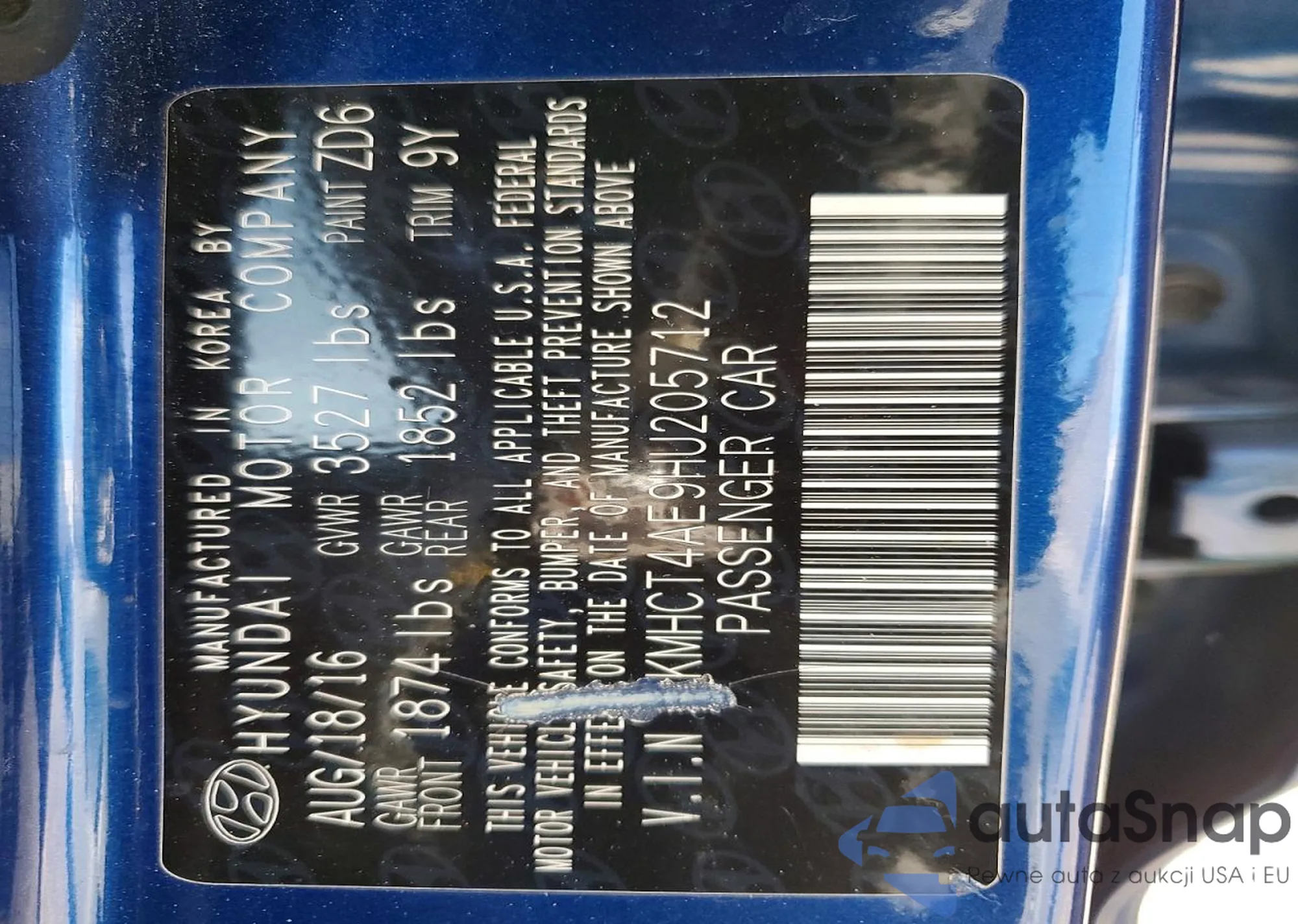 • VIN KMHCT4AE9HU205712