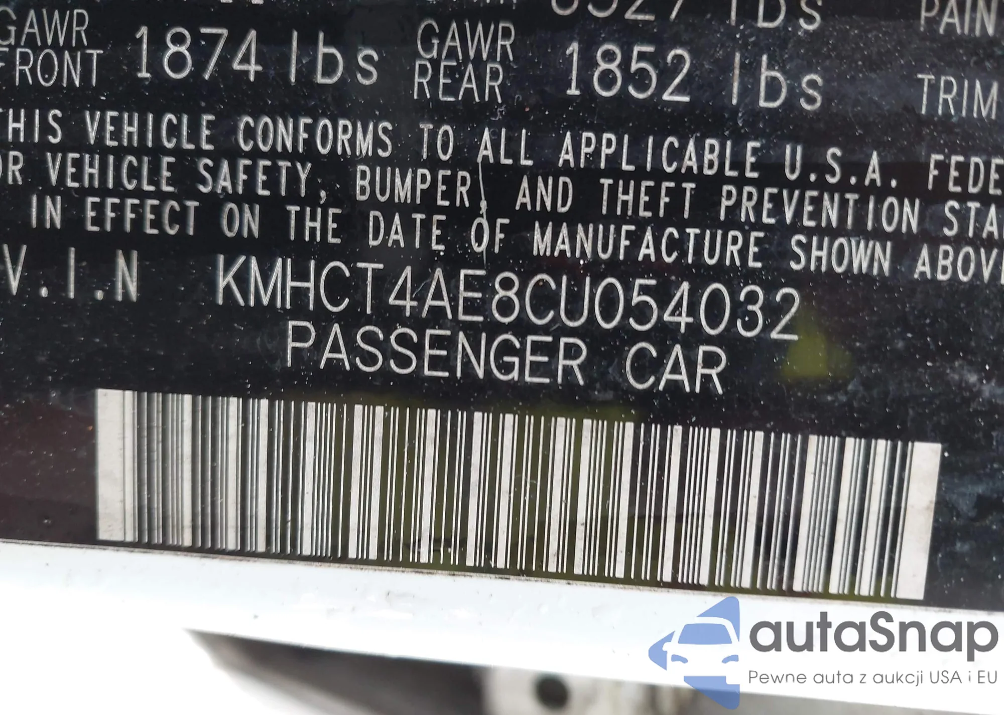 • VIN KMHCT4AE8CU054032