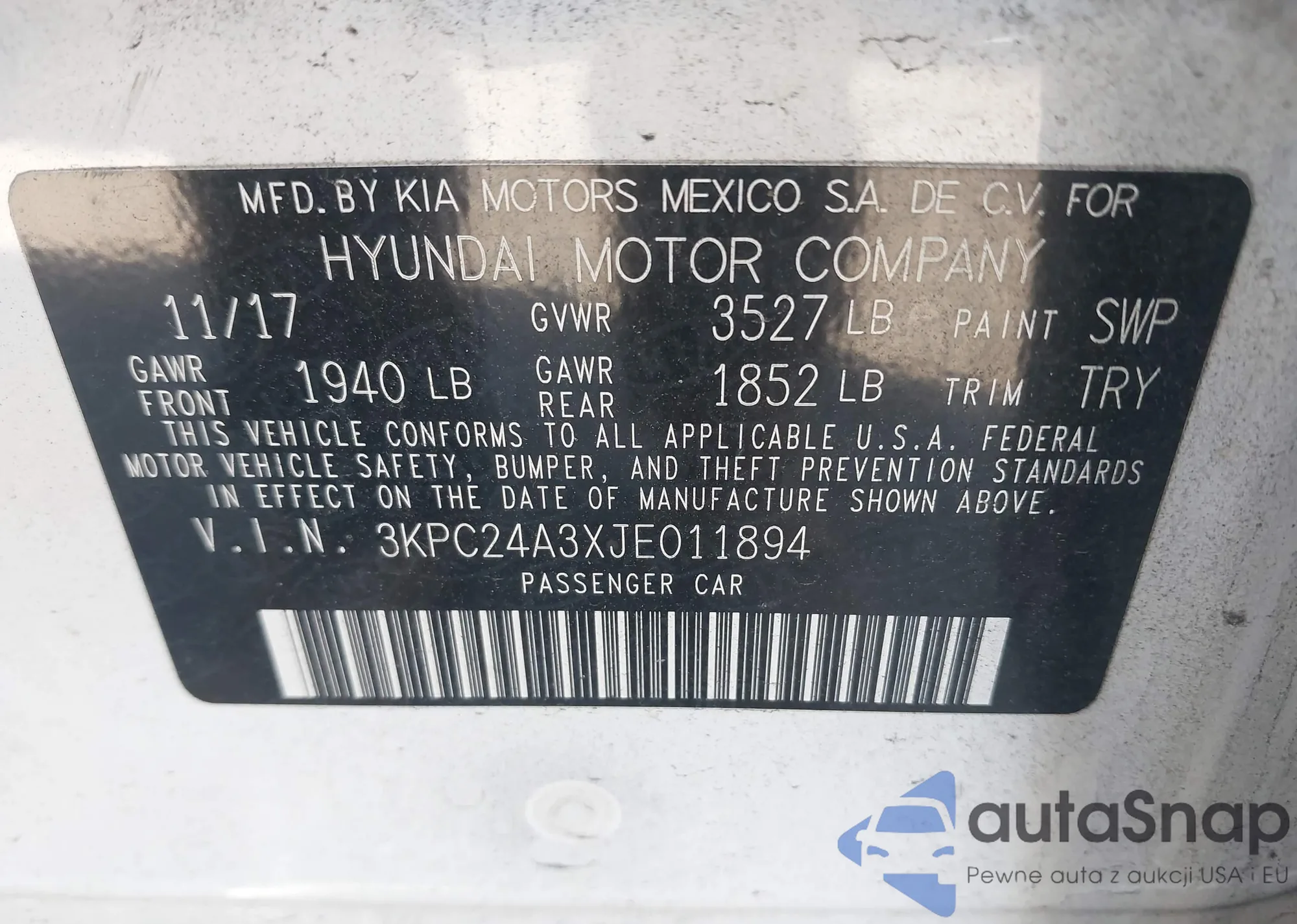 • VIN 3KPC24A3XJE011894