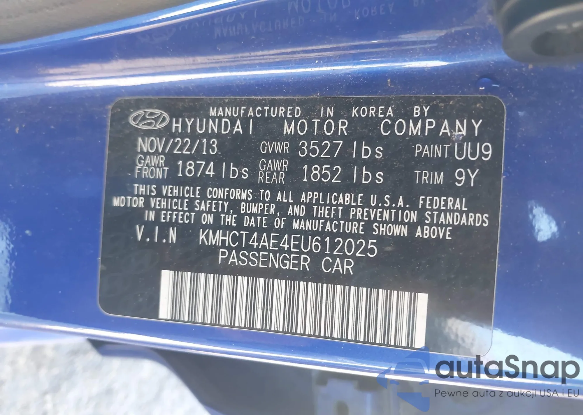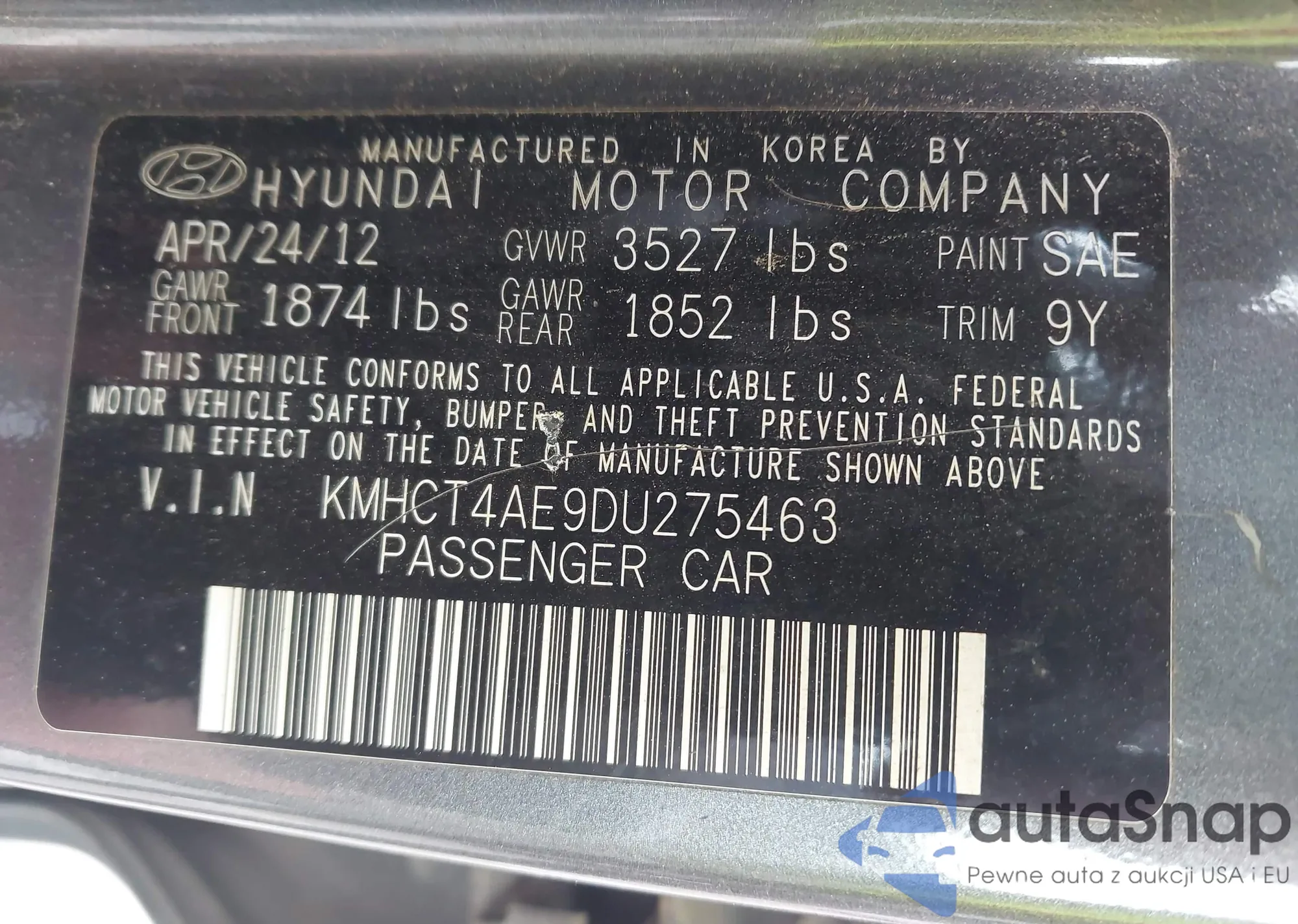 • VIN KMHCT4AE9DU275463