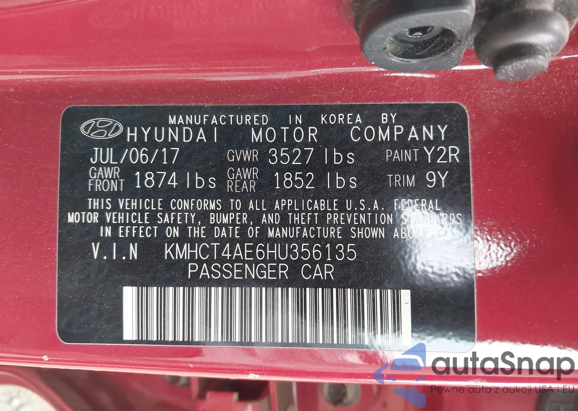 • VIN KMHCT4AE6HU356135