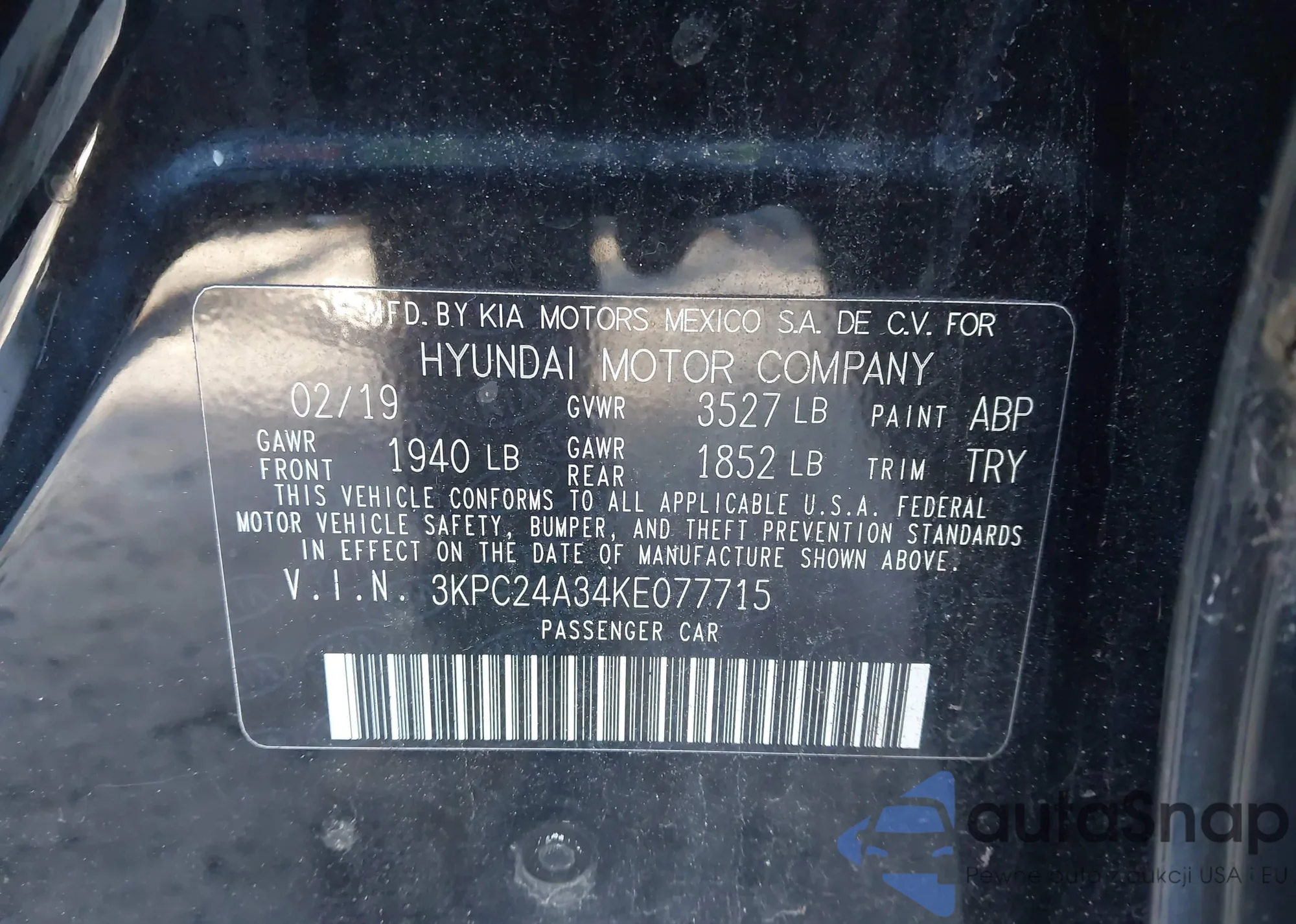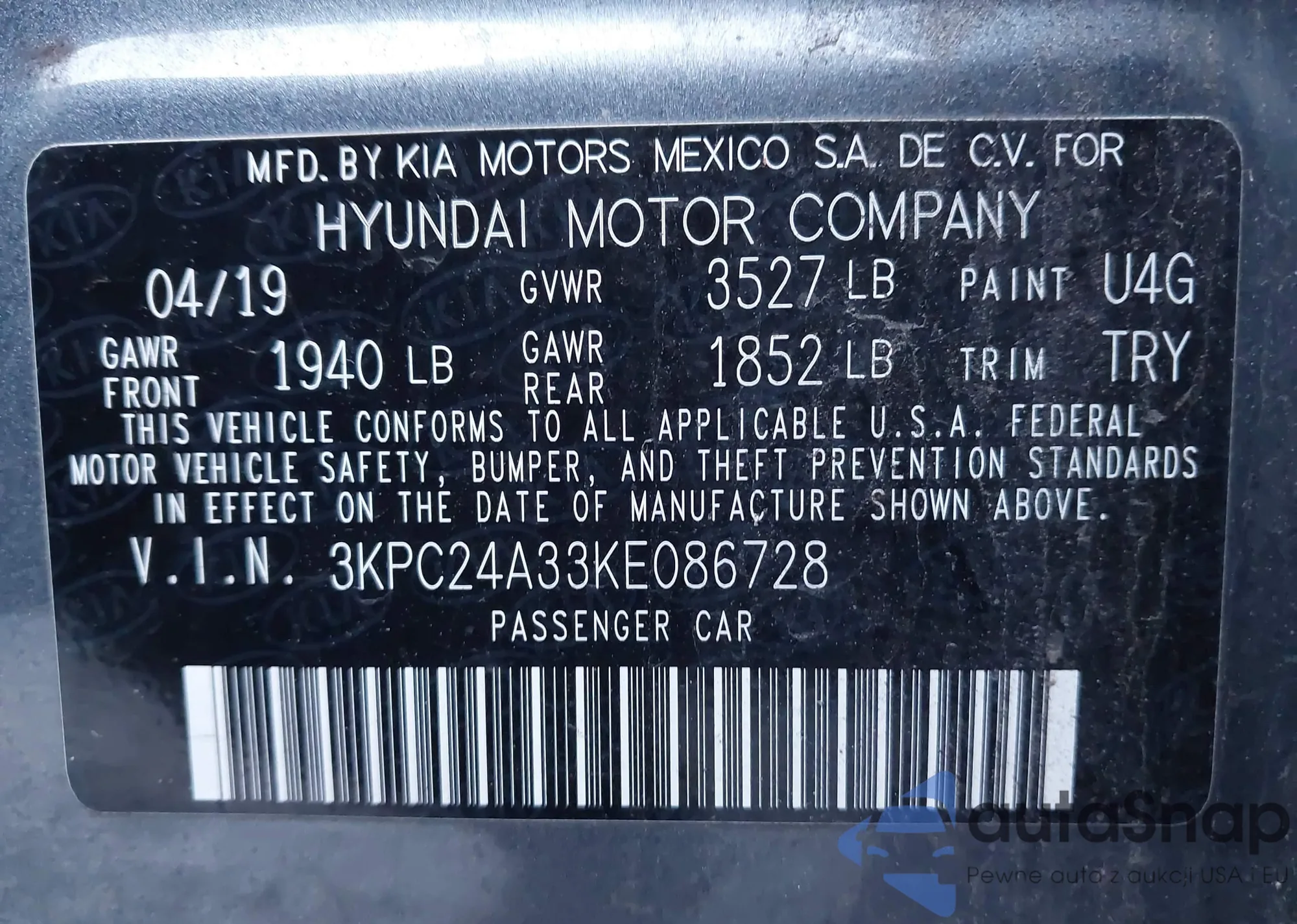 • VIN 3KPC24A34KE077715