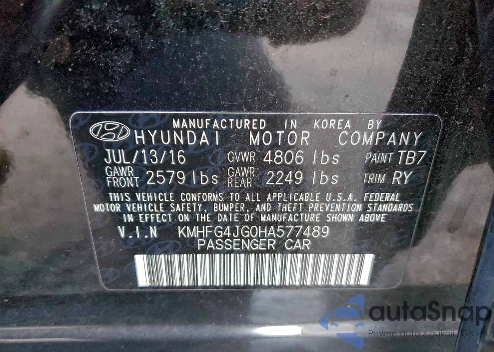 • VIN KMHFG4JG0HA577489