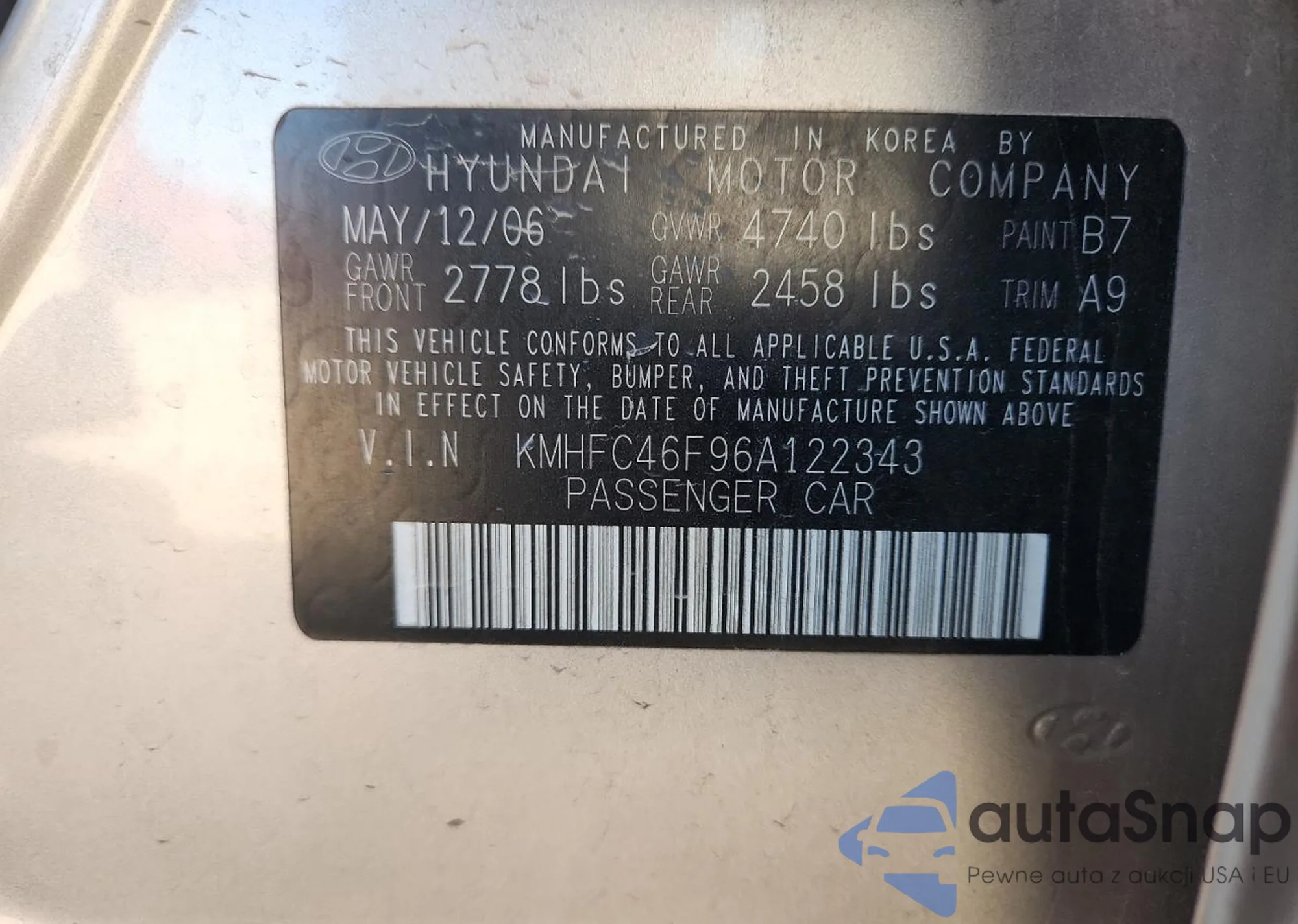 LOT: 90639385 VIN: KMHFC46F96A122343