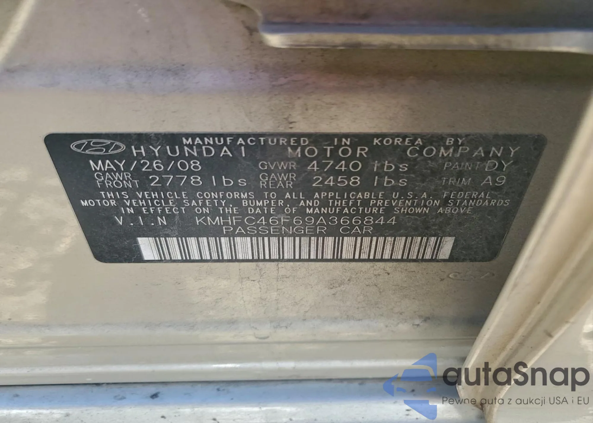 LOT: 96599205 VIN: KMHFC46F69A366844