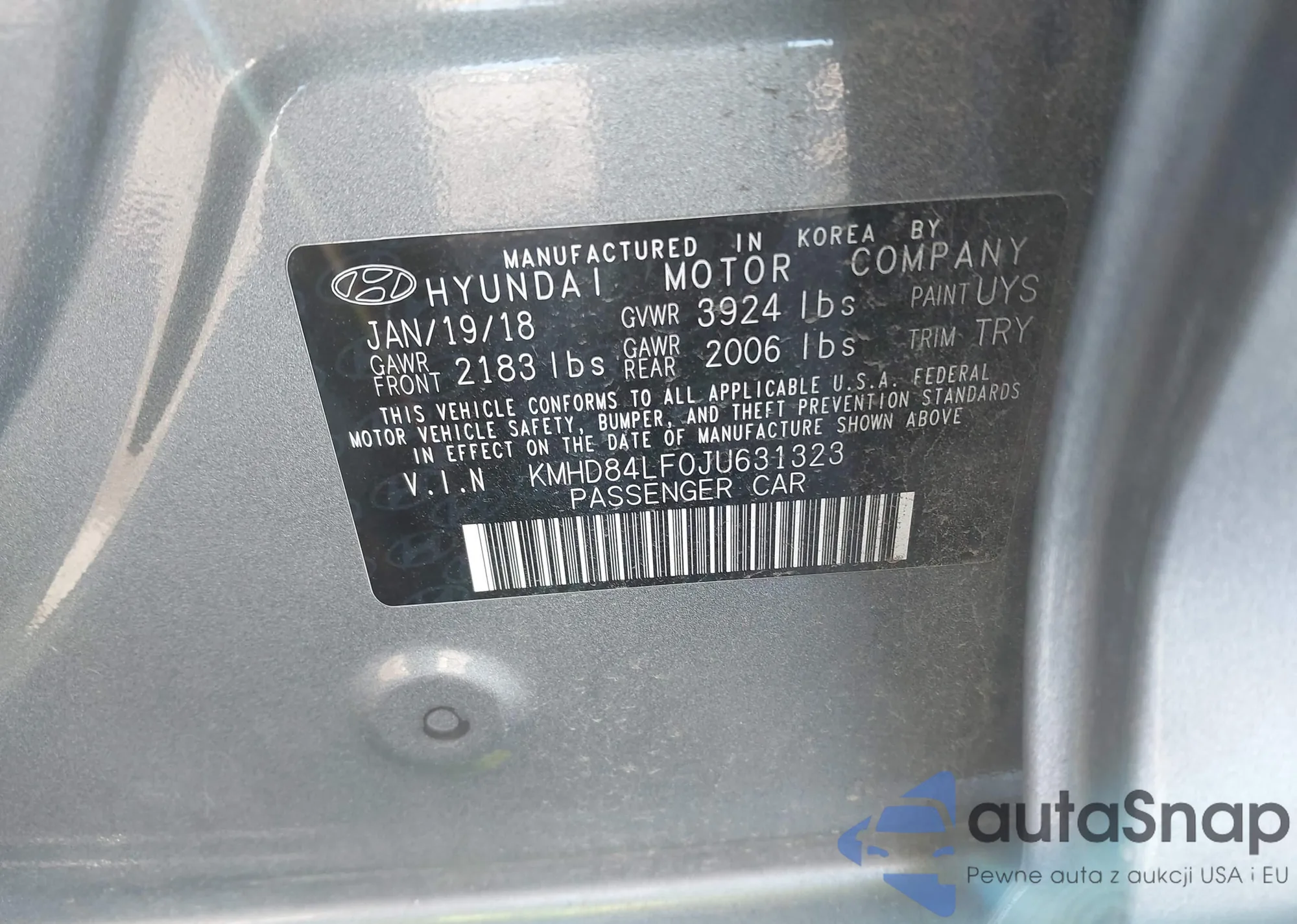 LOT: 43681422 VIN: KMHD84LF0JU631323