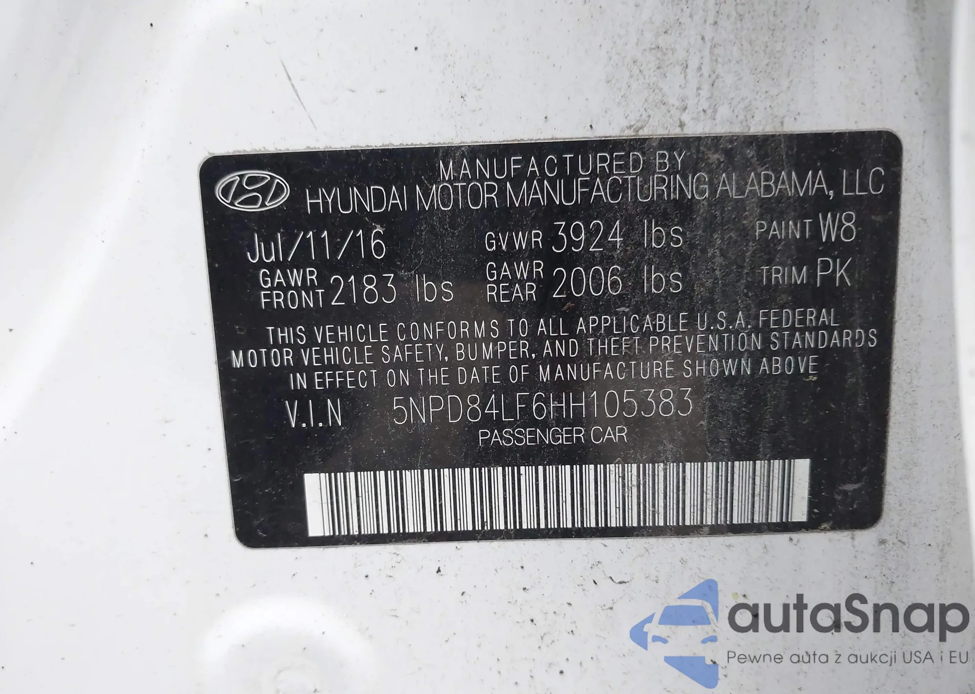 • VIN 5NPD84LF6HH105383