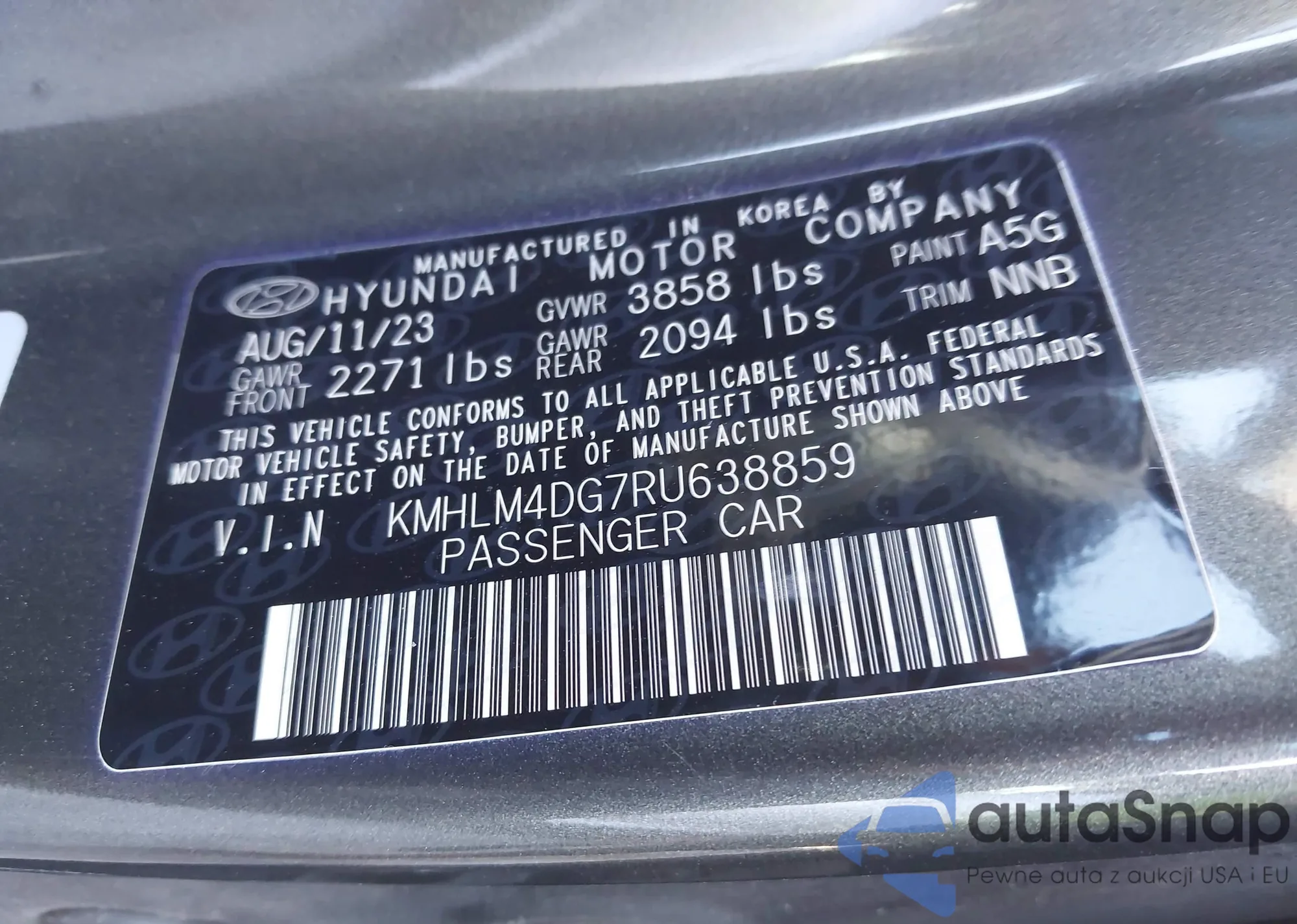 • VIN KMHLL4DG7RU823271