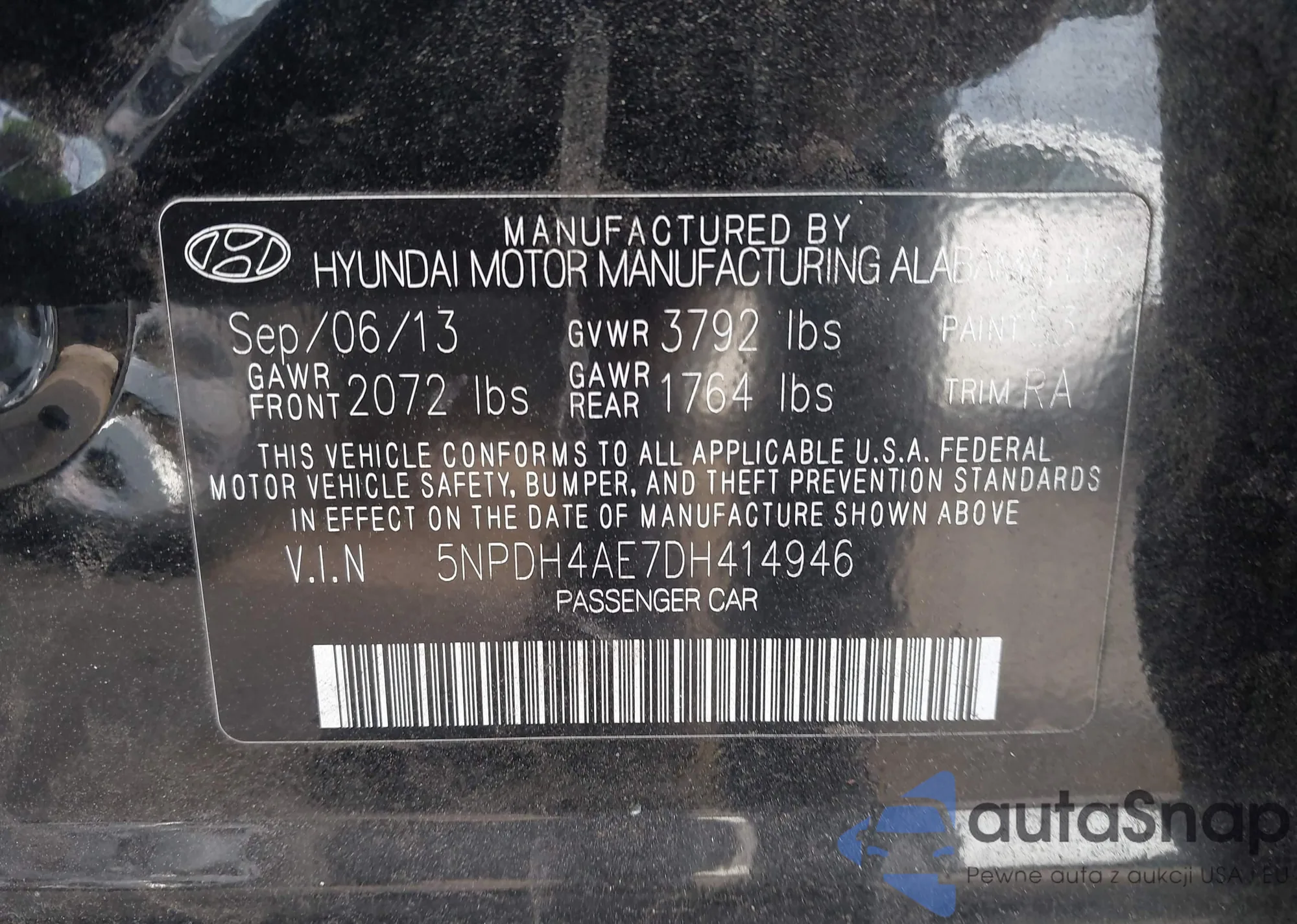 • VIN 5NPDH4AE7DH414946