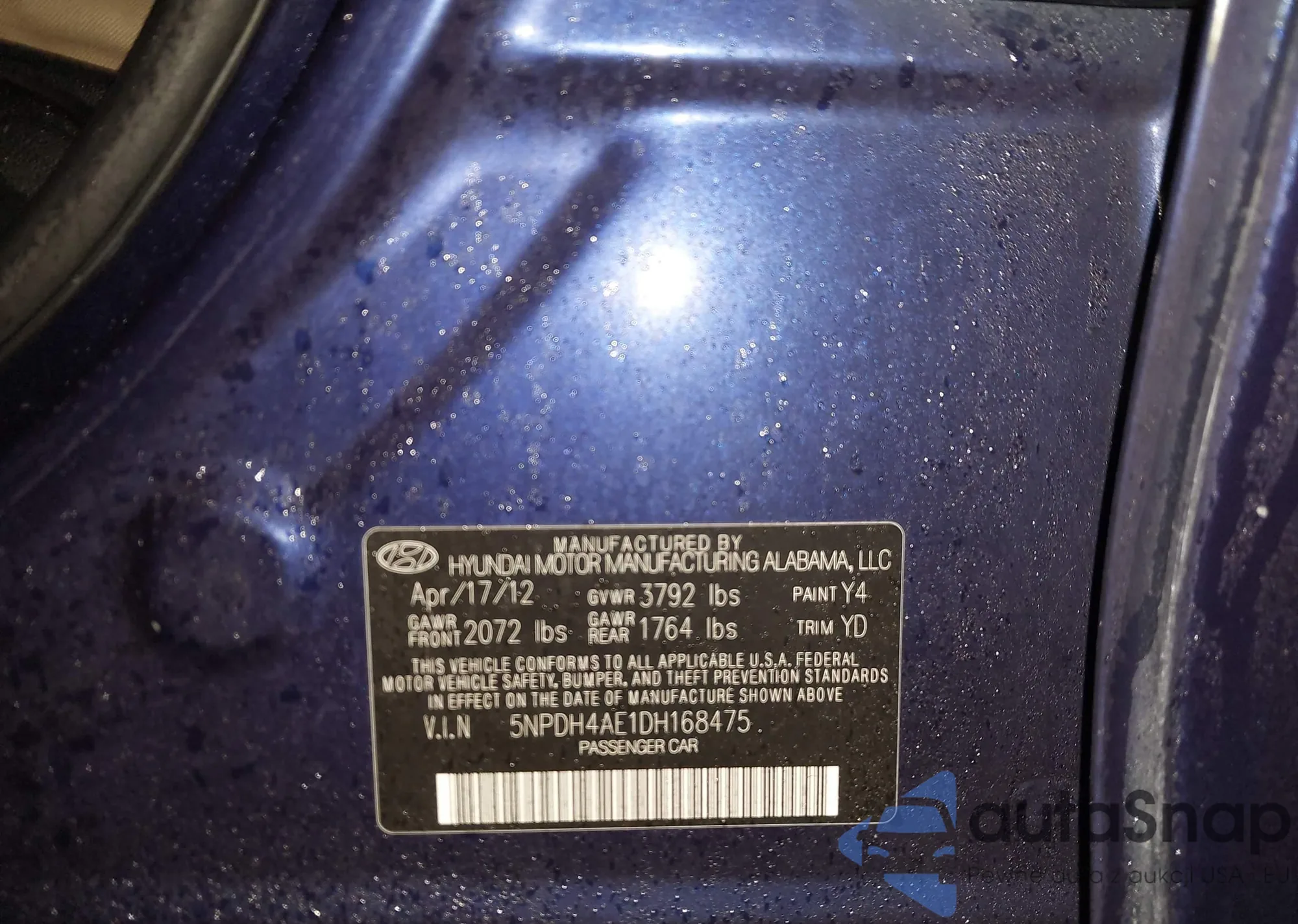 LOT: 44031286 VIN: 5NPDH4AE1DH168475