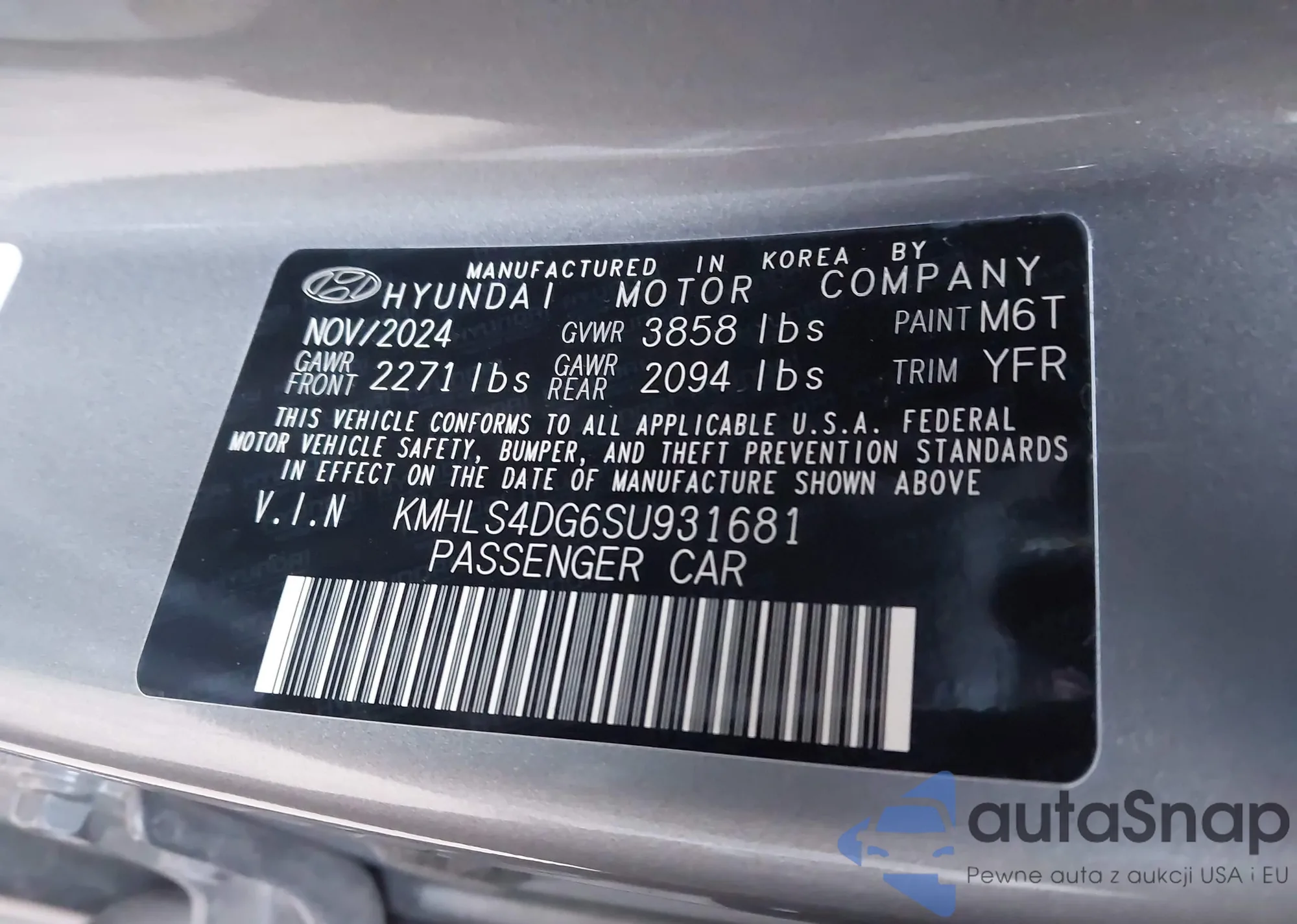 • VIN KMHLS4DG6SU931681