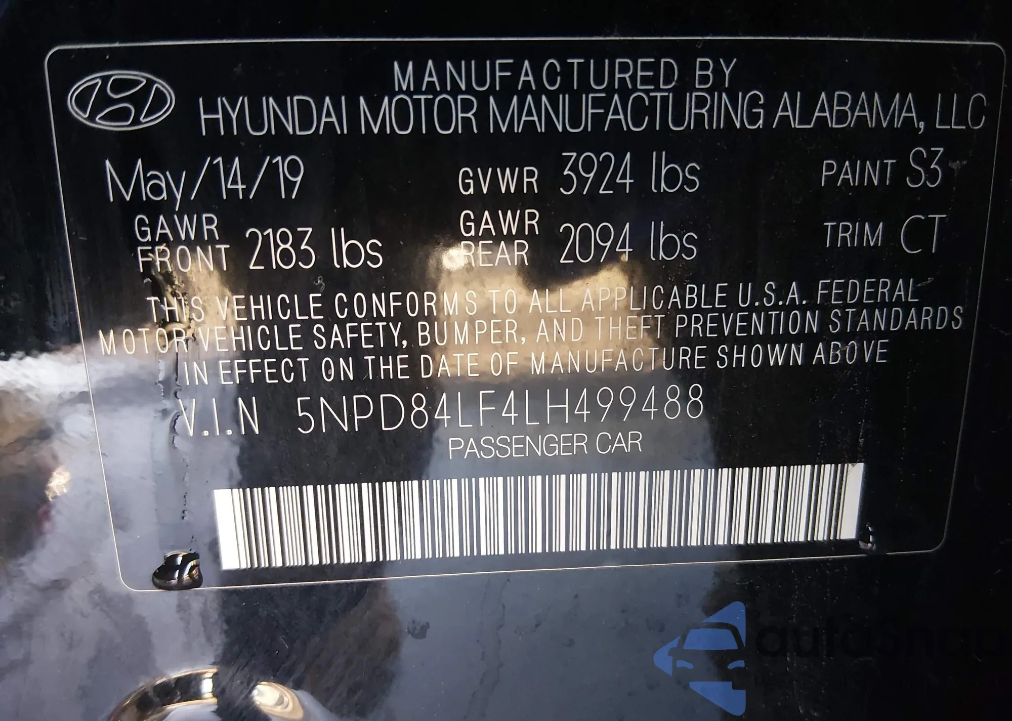 • VIN 5NPD84LF4LH499488