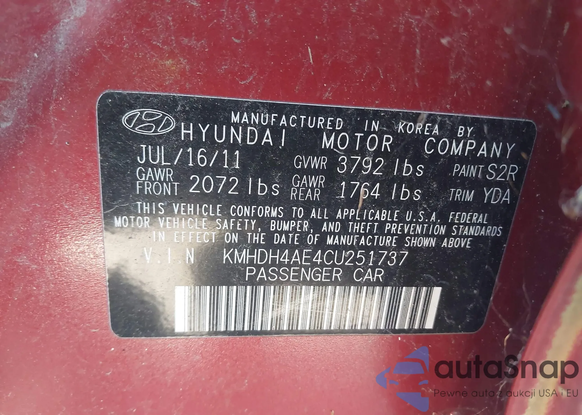 LOT: 44154937 VIN: KMHDH4AE4CU251737