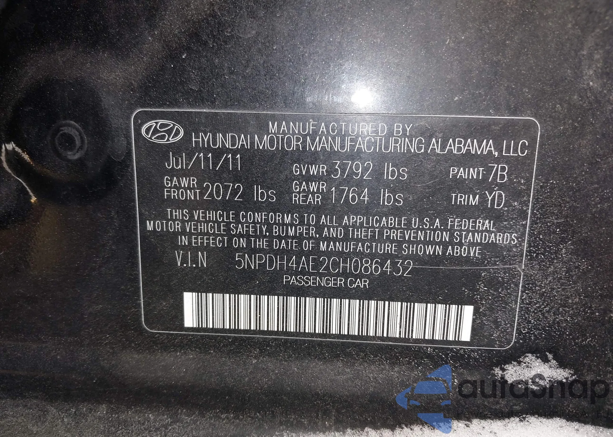LOT: 44202840 VIN: 5NPDH4AE2CH086432