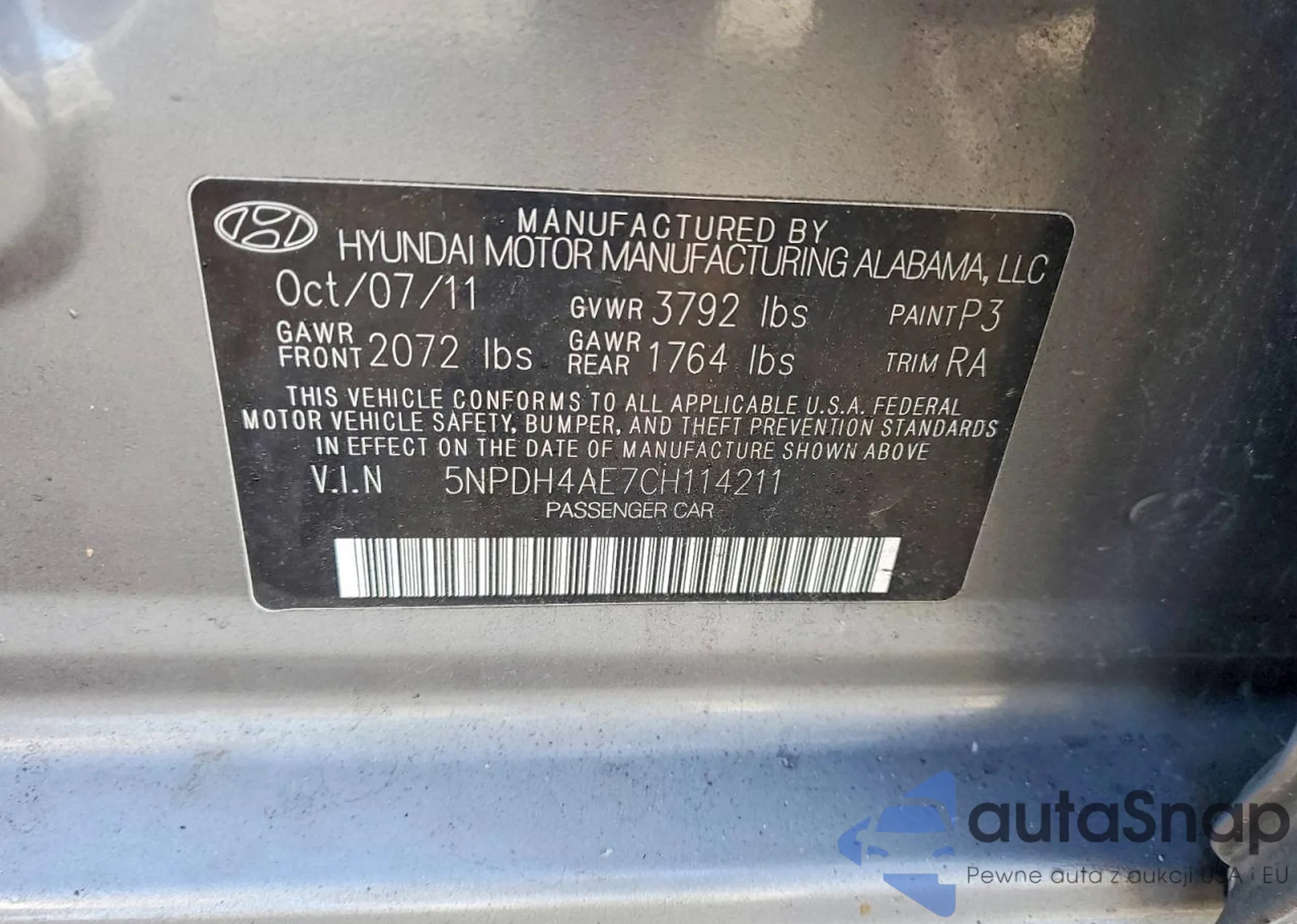 LOT: 72362965 VIN: 5NPDH4AE7CH114211