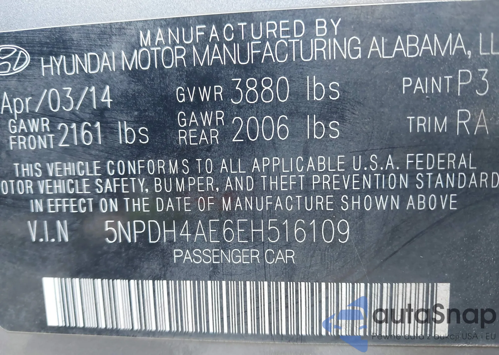 • VIN 5NPDH4AE6EH516109