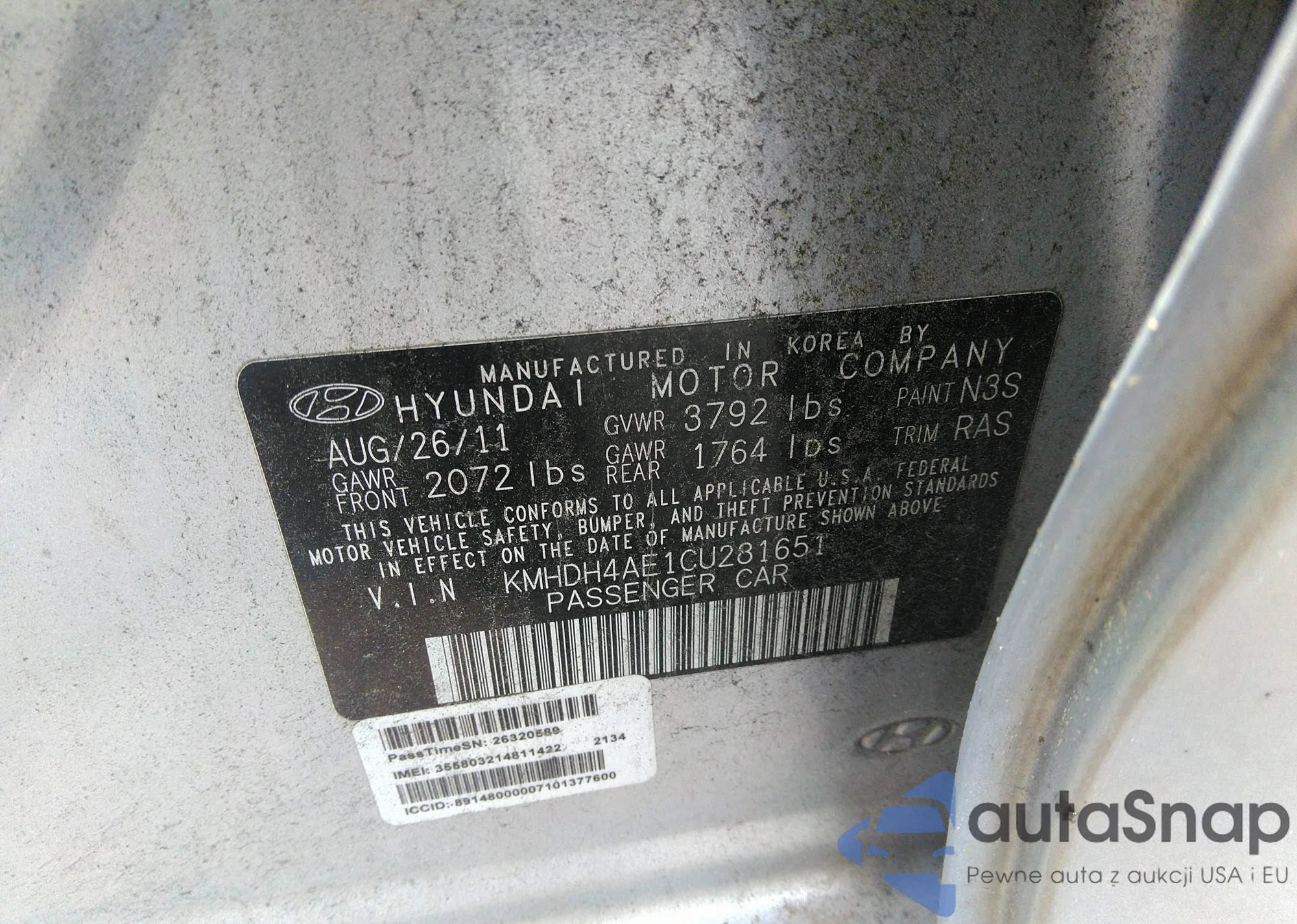 LOT: 36577417 VIN: KMHDH4AE1CU281651