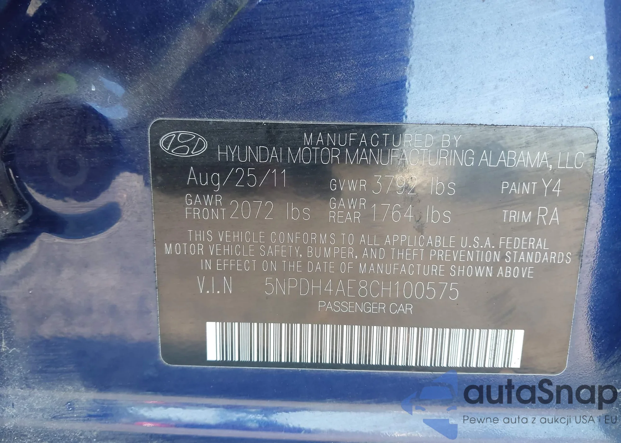 • VIN 5NPDH4AE8CH100575