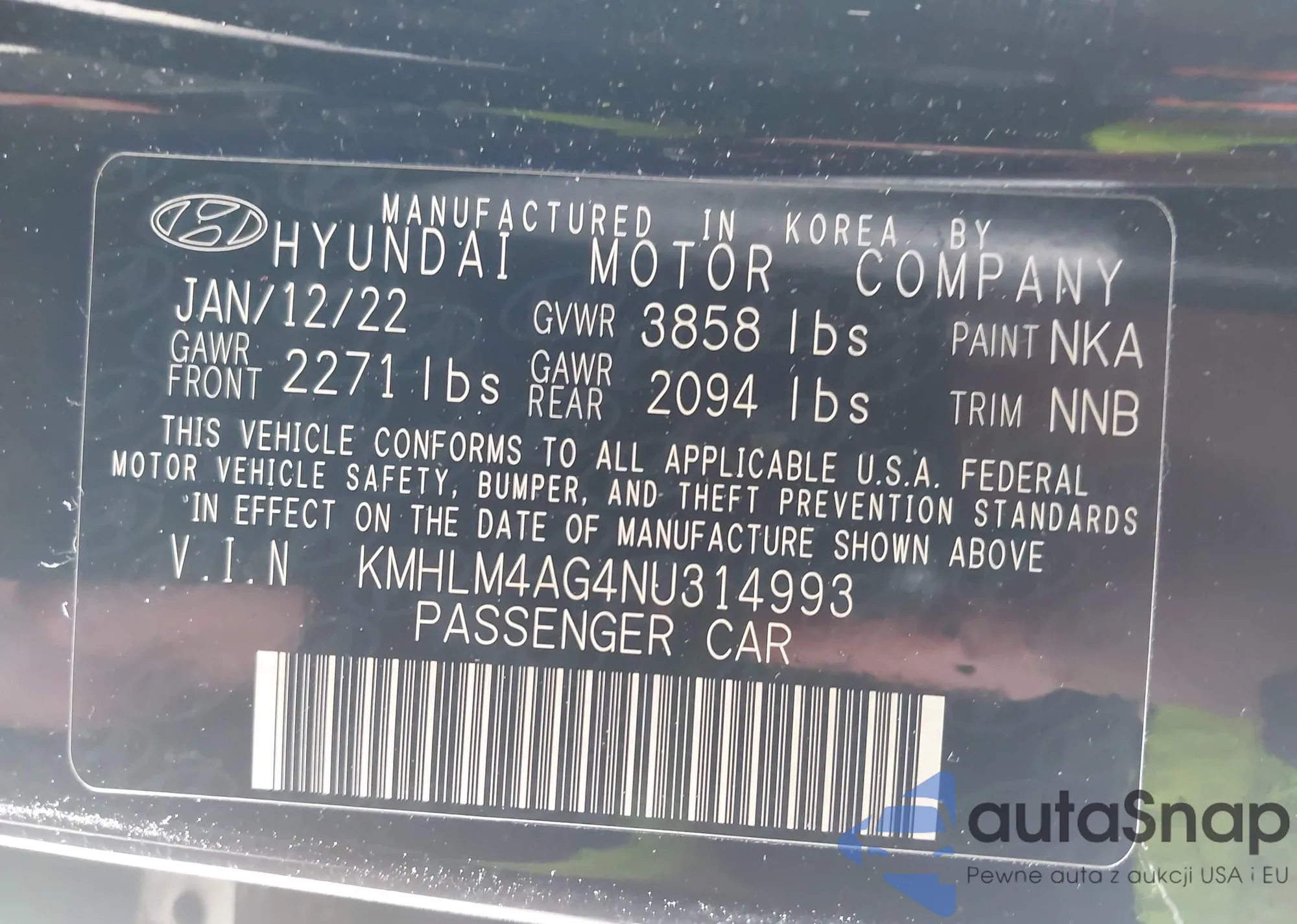 • VIN KMHLM4AG4NU314993