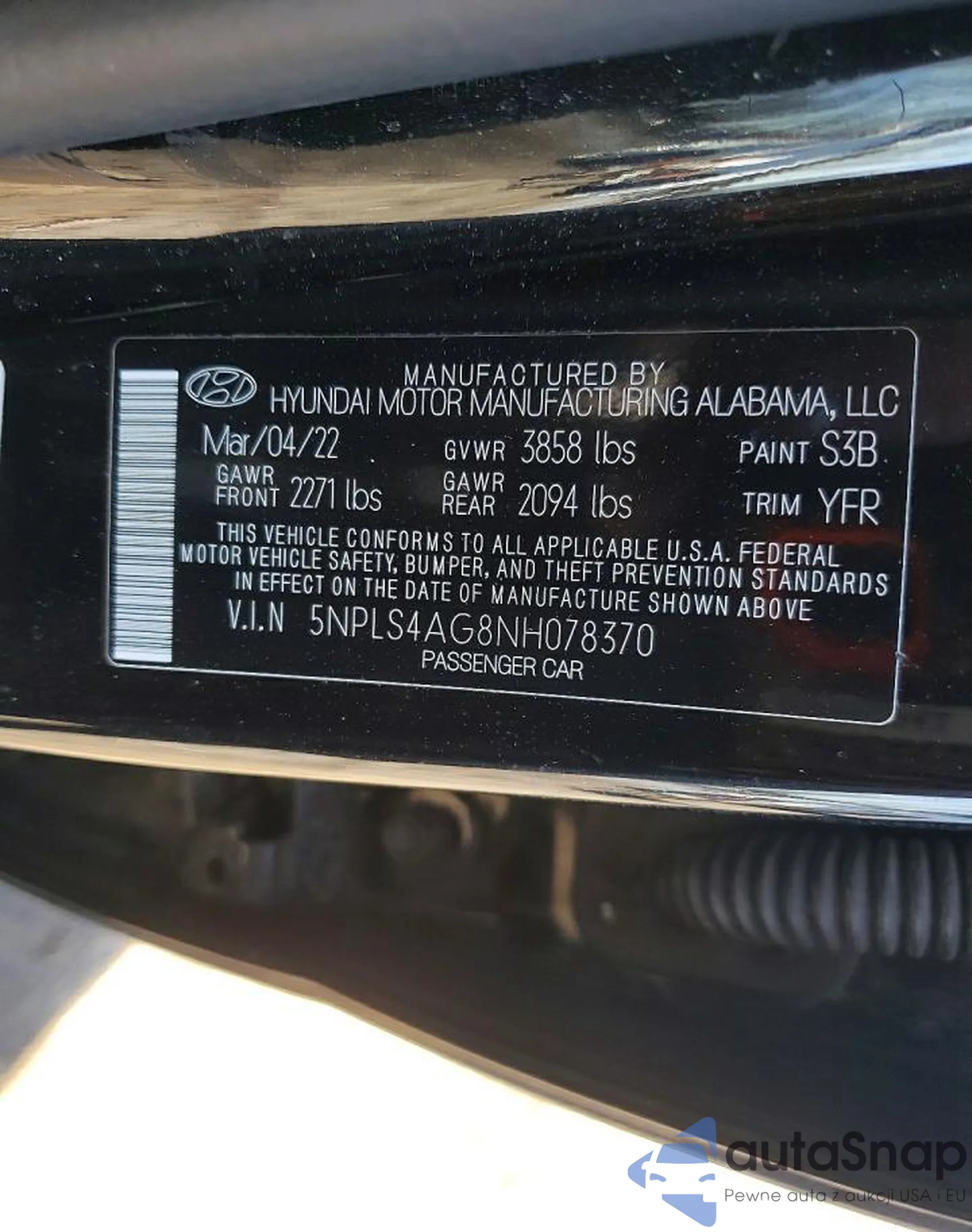 • VIN 5NPLS4AG8NH078370