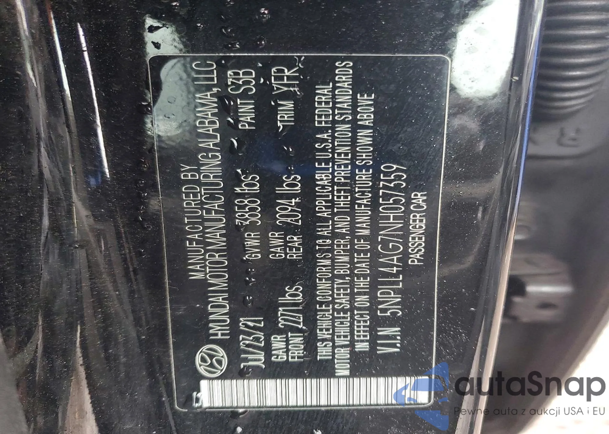 • VIN 5NPLL4AG7NH057359