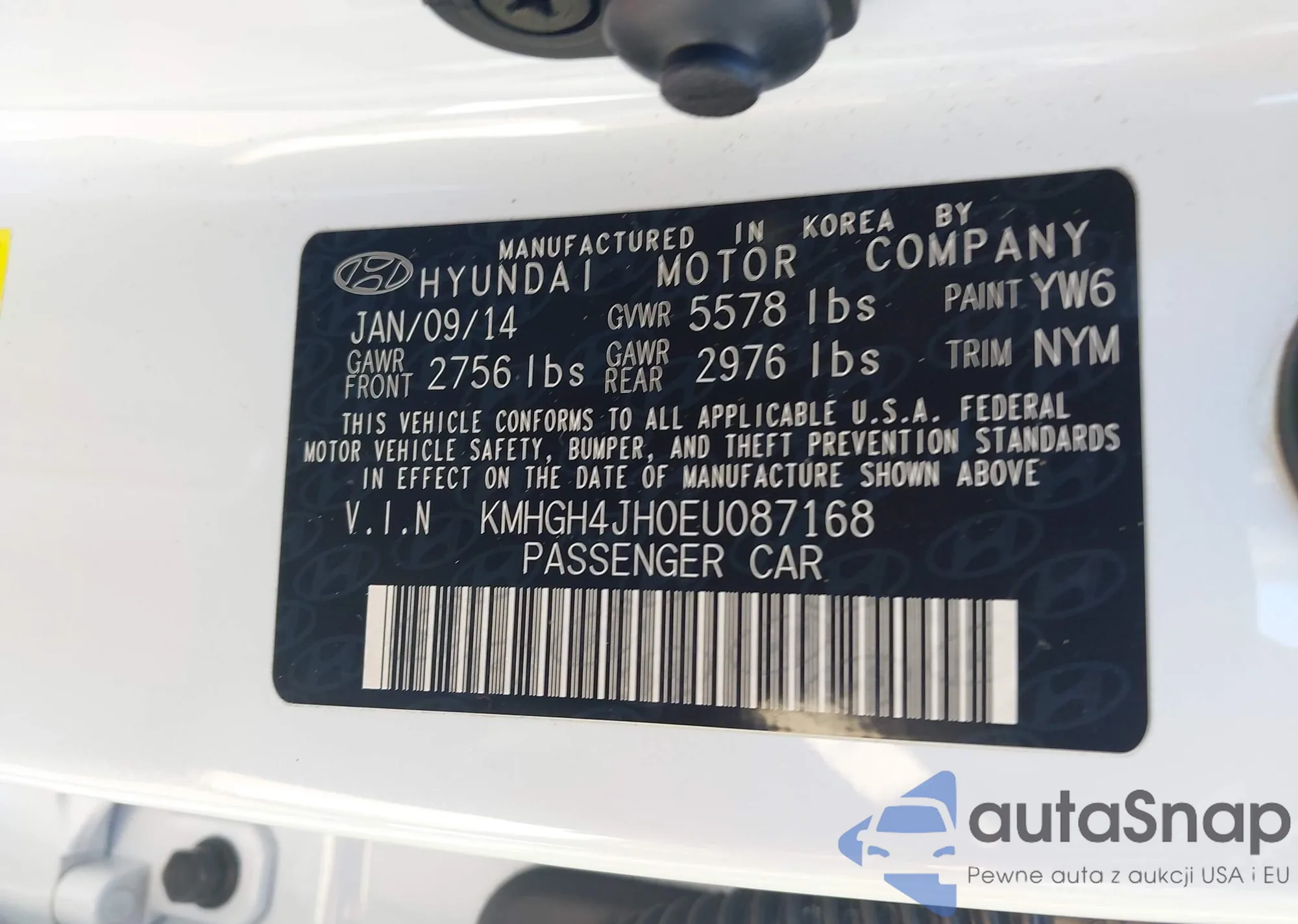 • VIN KMHGH4JH0EU087168