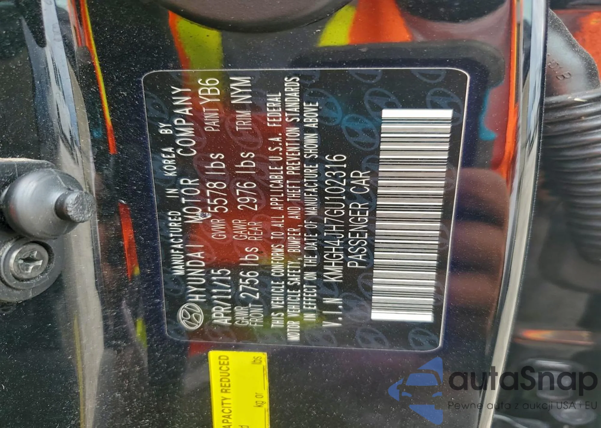 LOT: 73219955 VIN: KMHGH4JH7GU102316