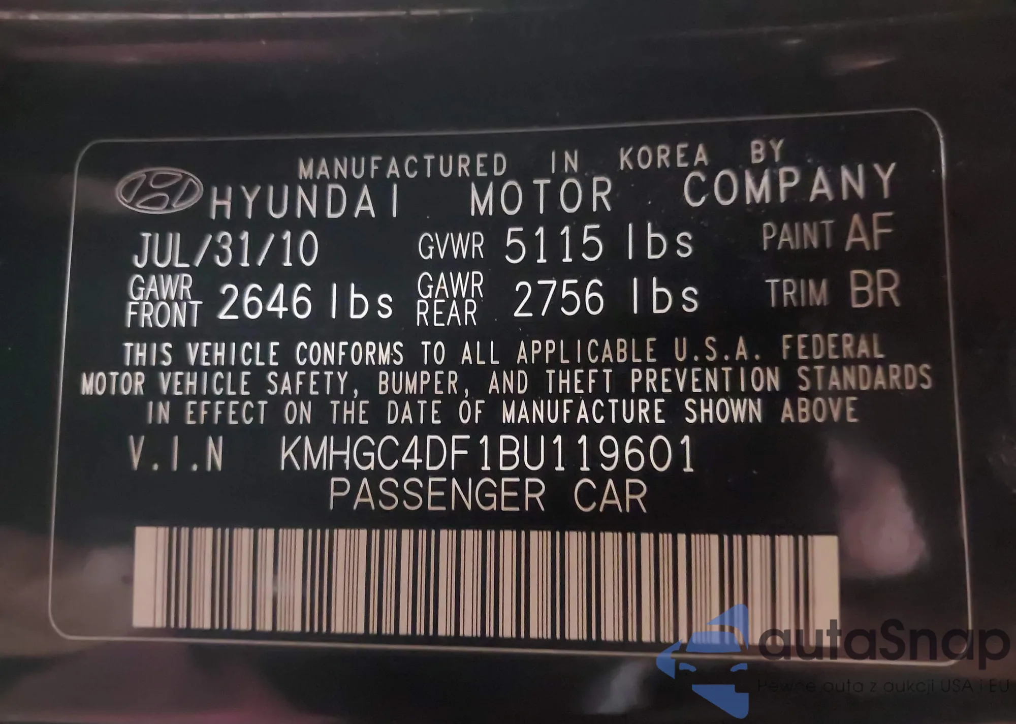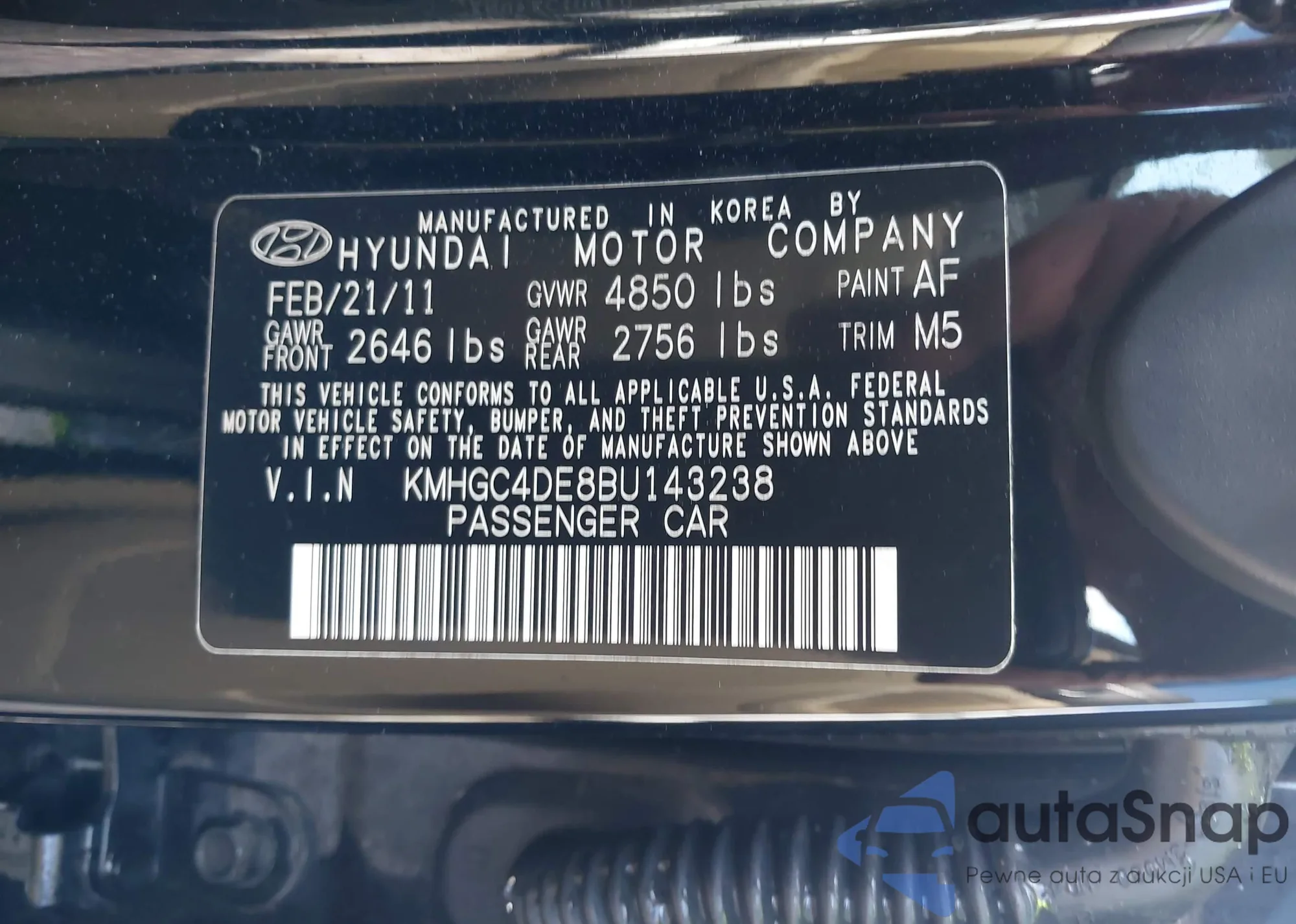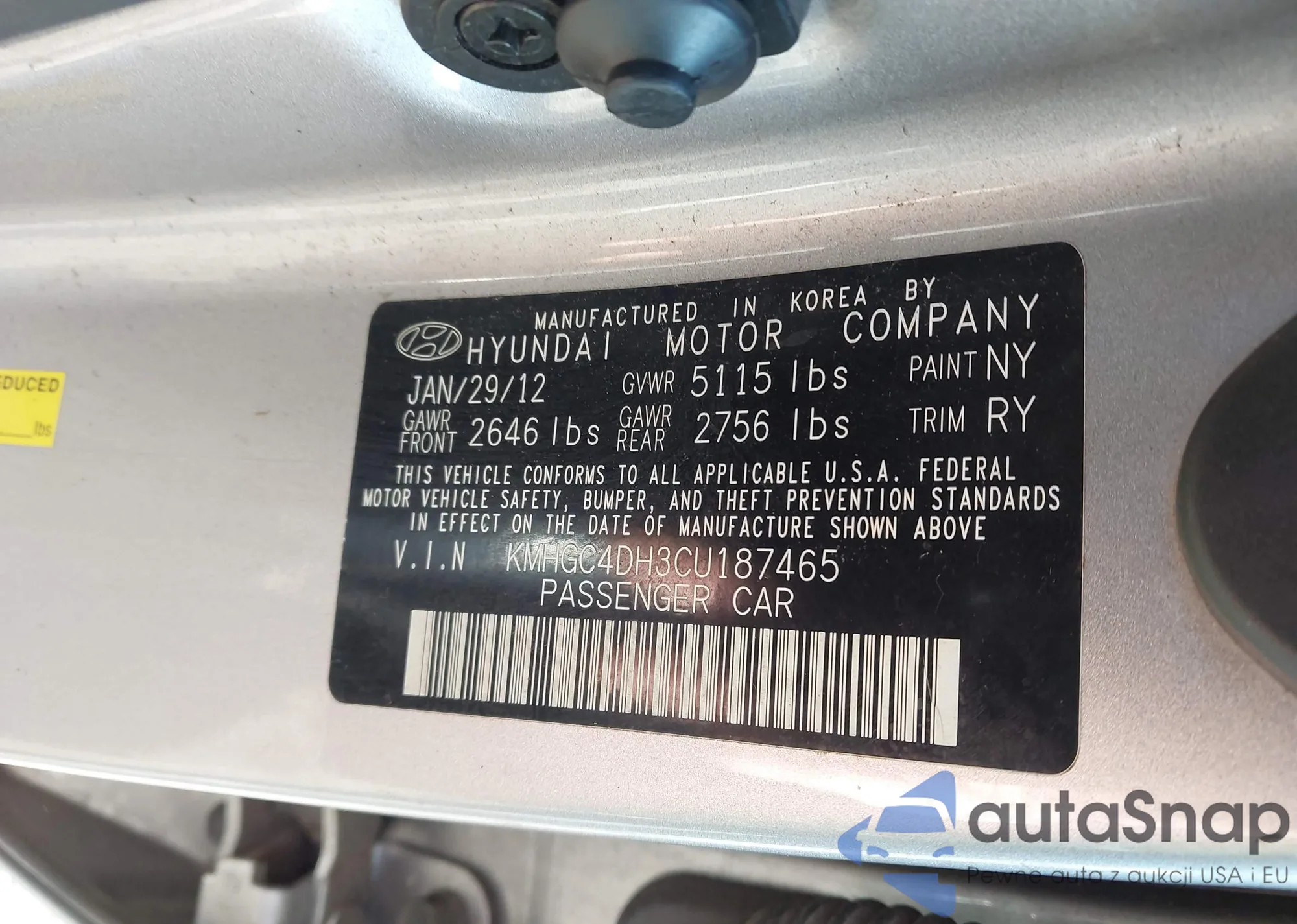 • VIN KMHGC4DH3CU187465