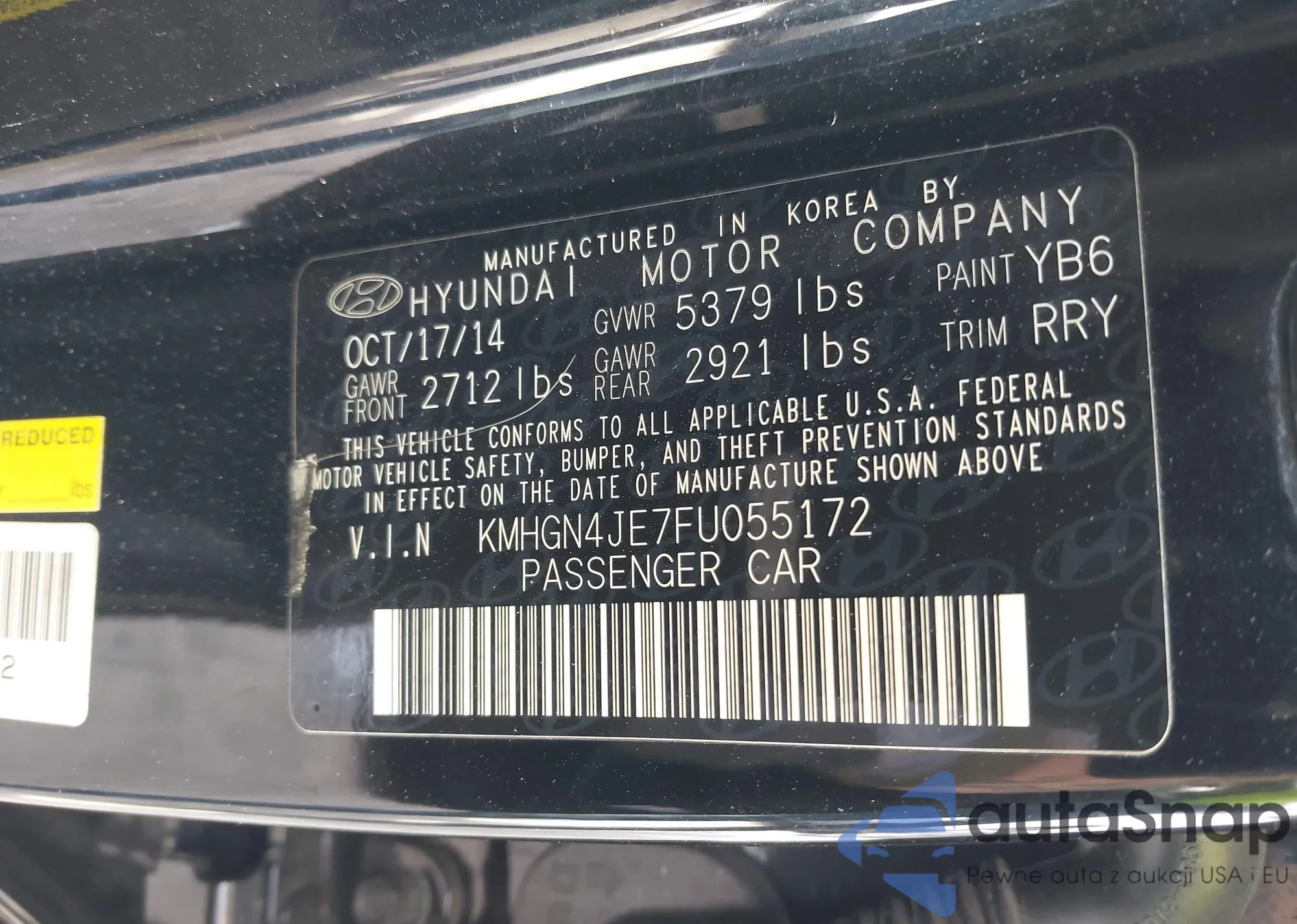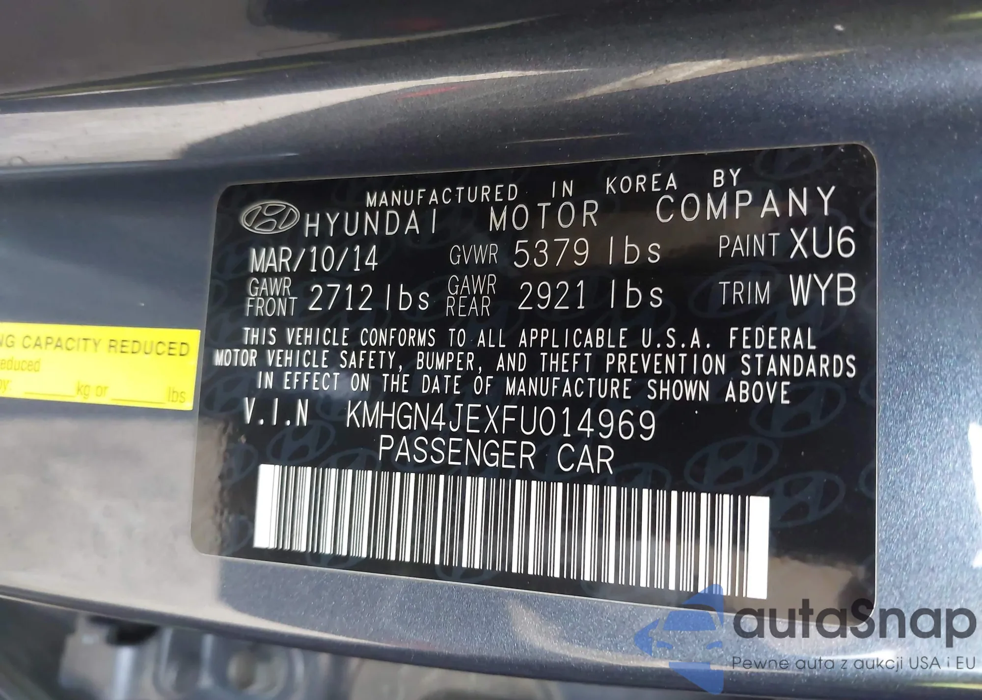 LOT: 44121796 VIN: KMHGN4JEXFU014969