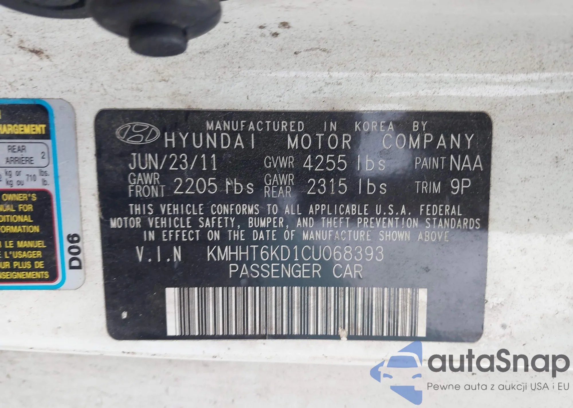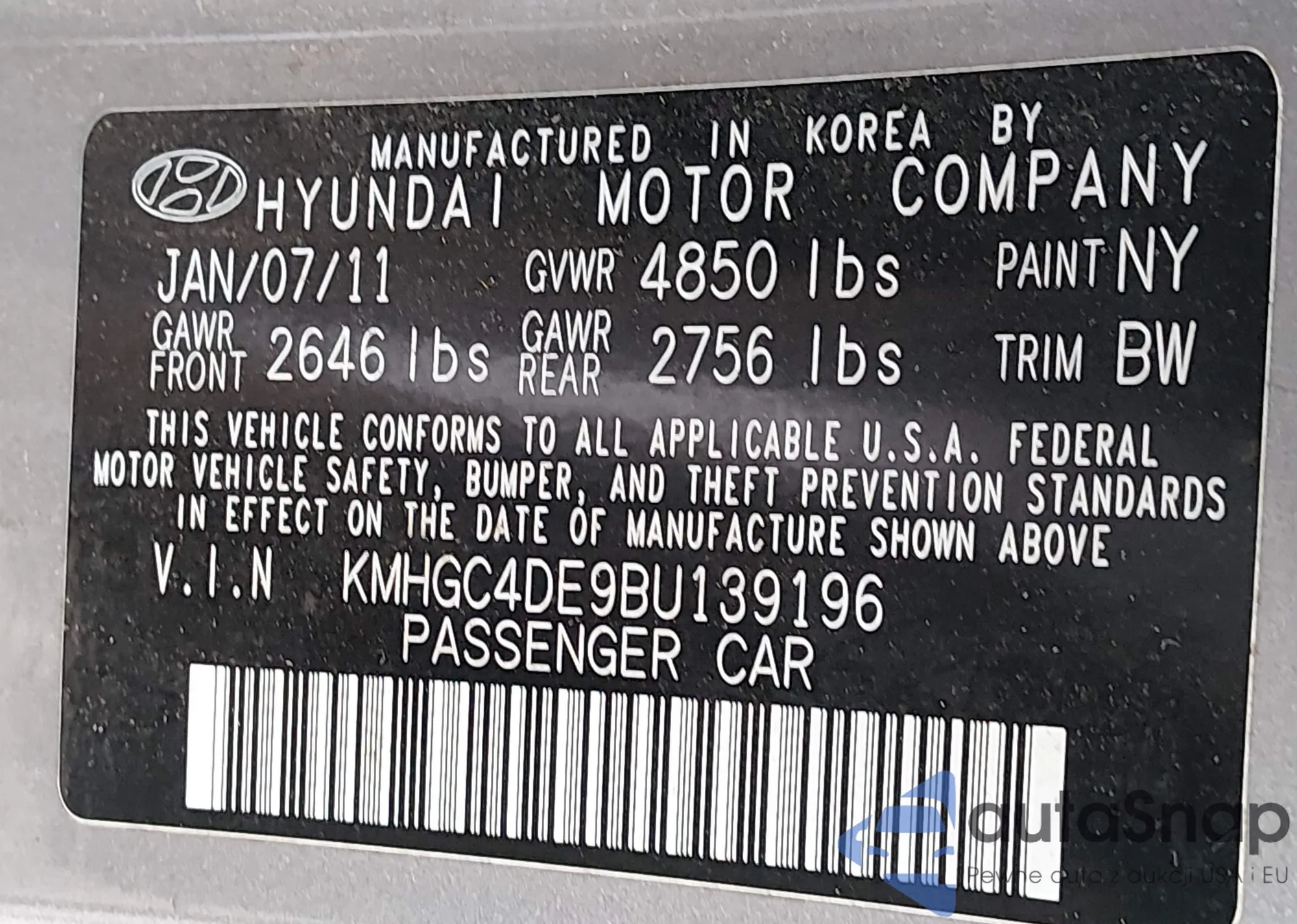 • VIN KMHGC4DE9BU139196