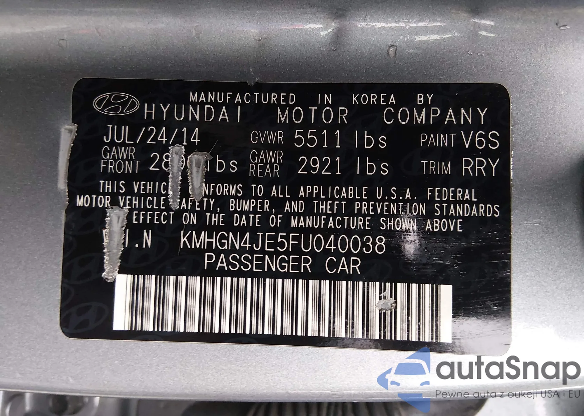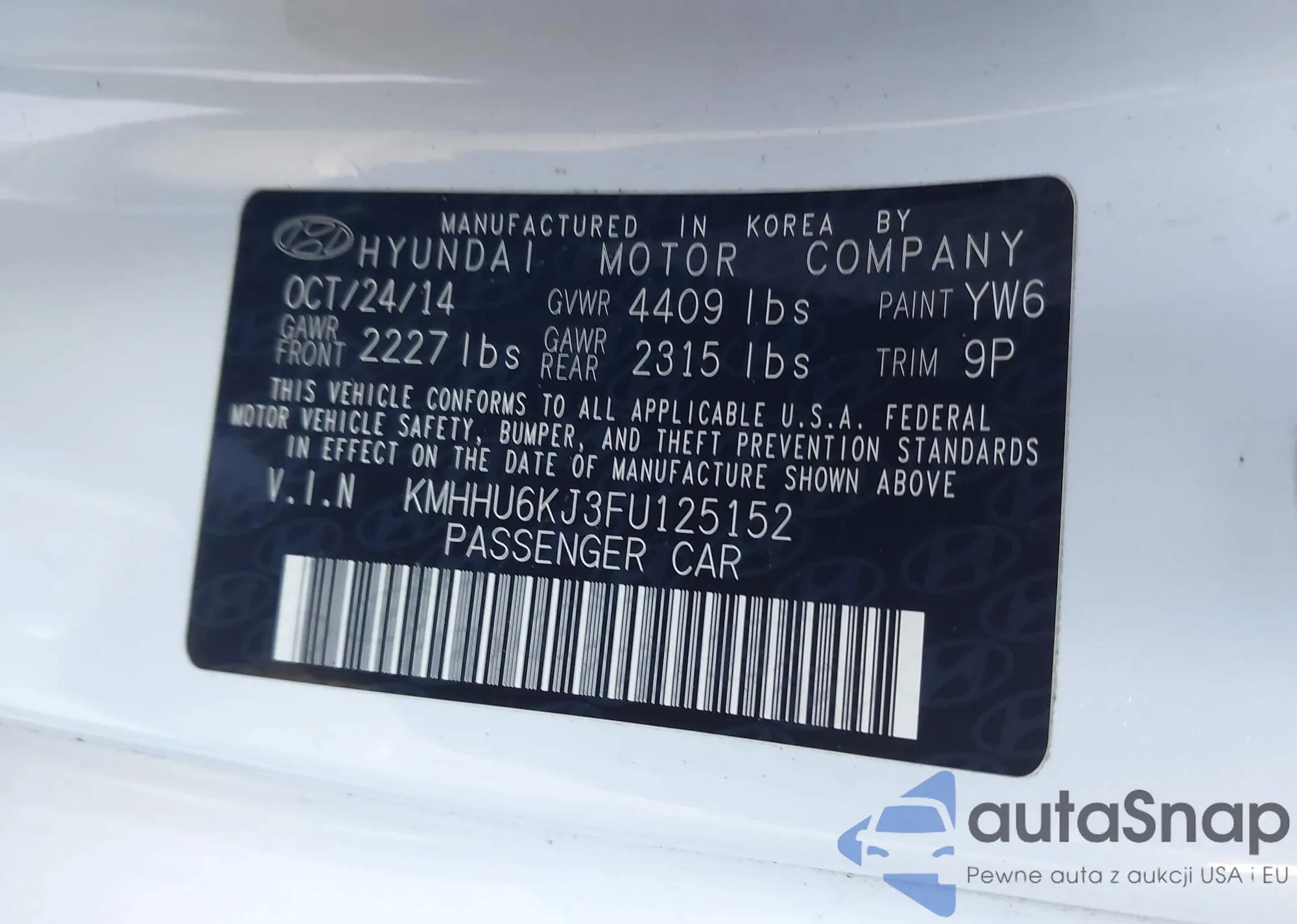 LOT: 44307941 VIN: KMHGN4JE5FU091975