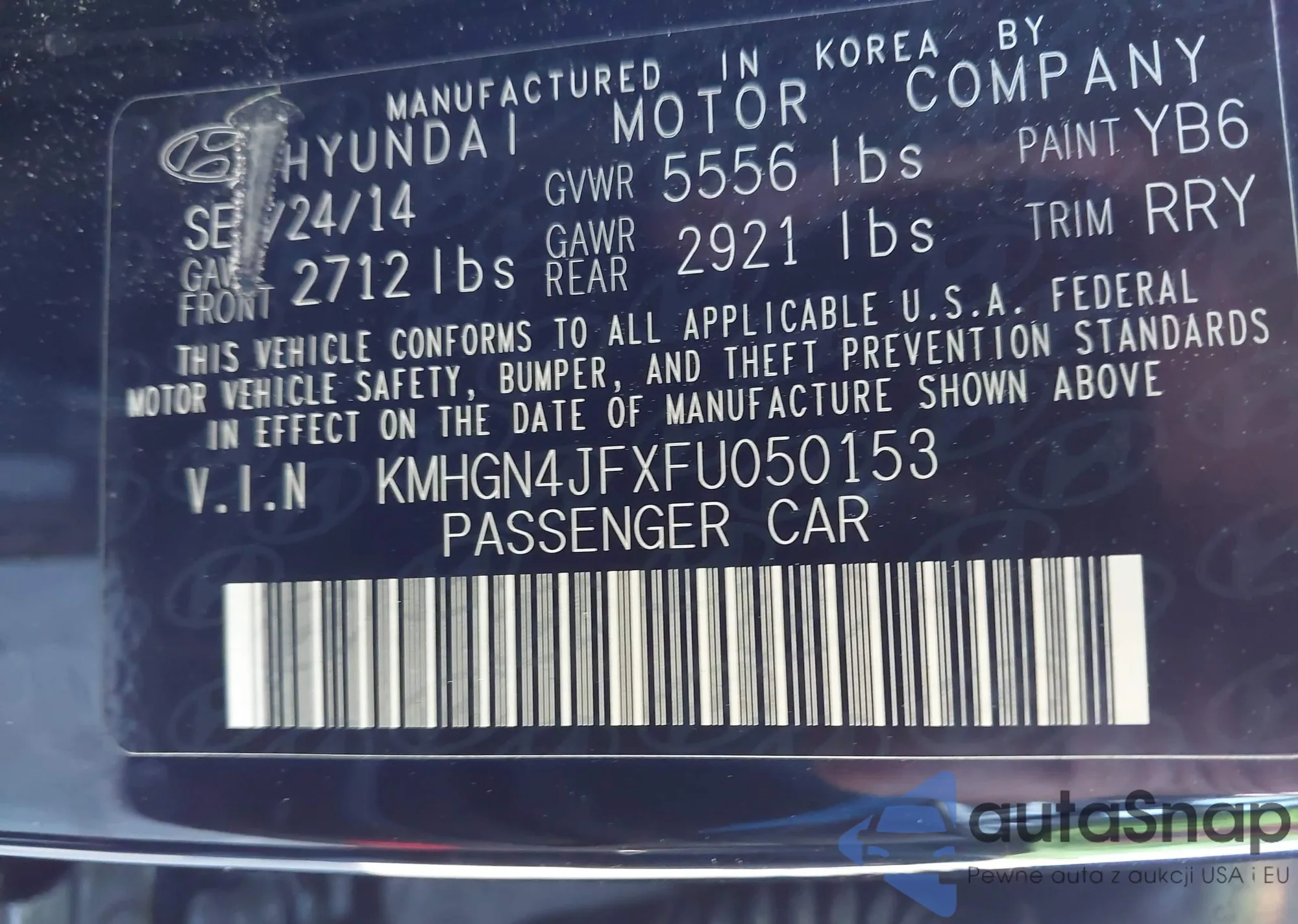 LOT: 87100505 VIN: KMHGN4JEXFU045946