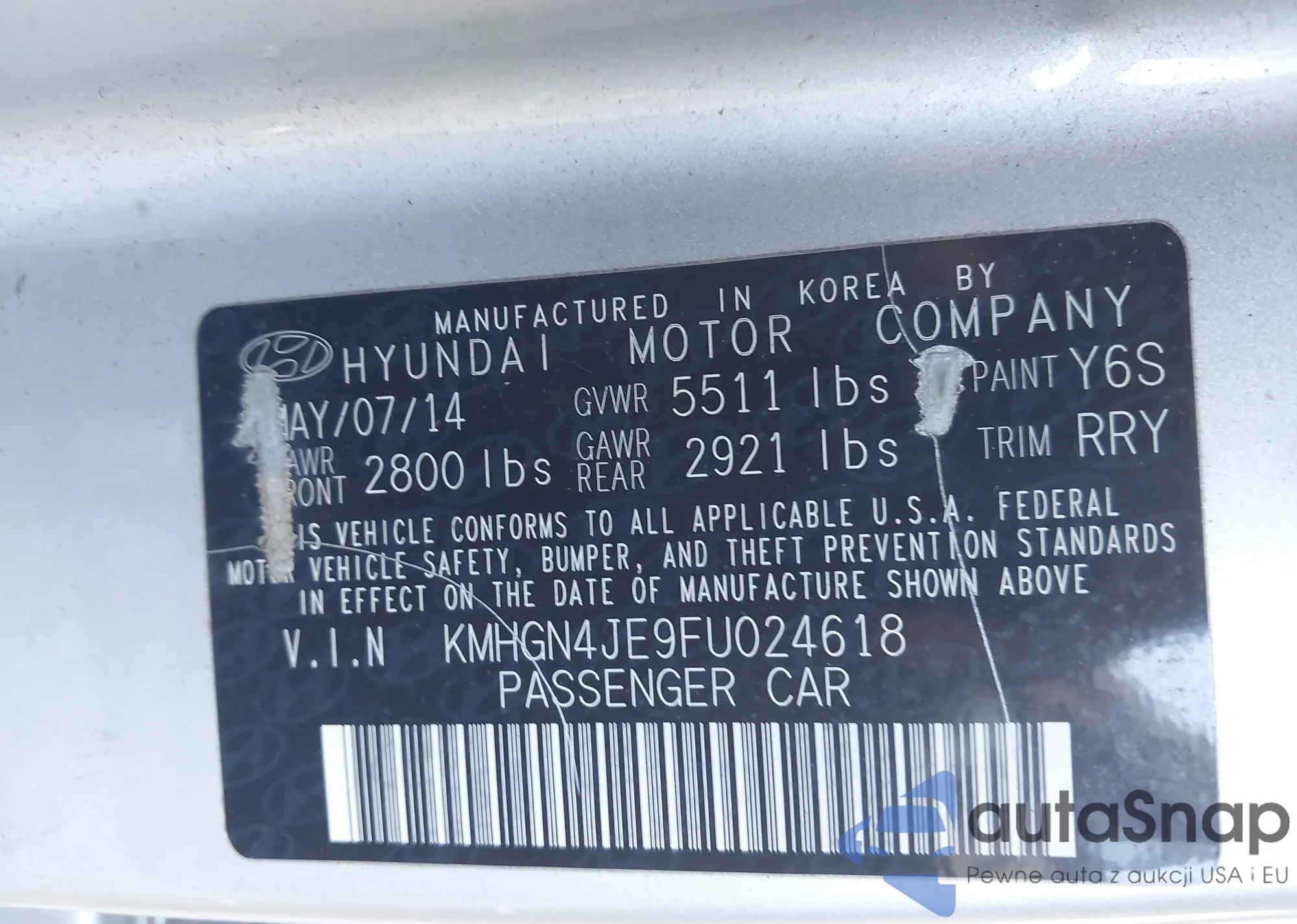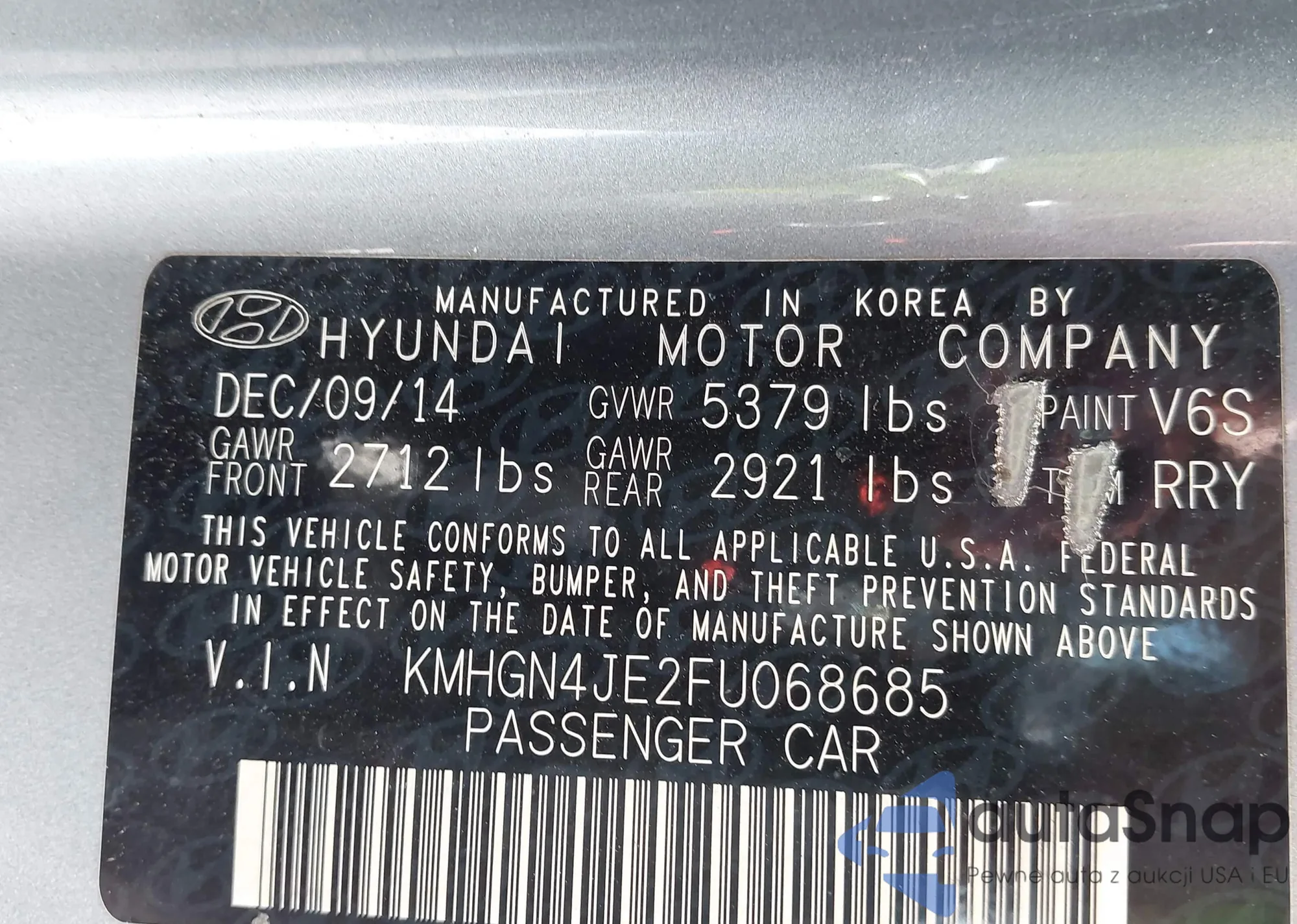 LOT: 43459725 VIN: KMHGN4JE2FU068685