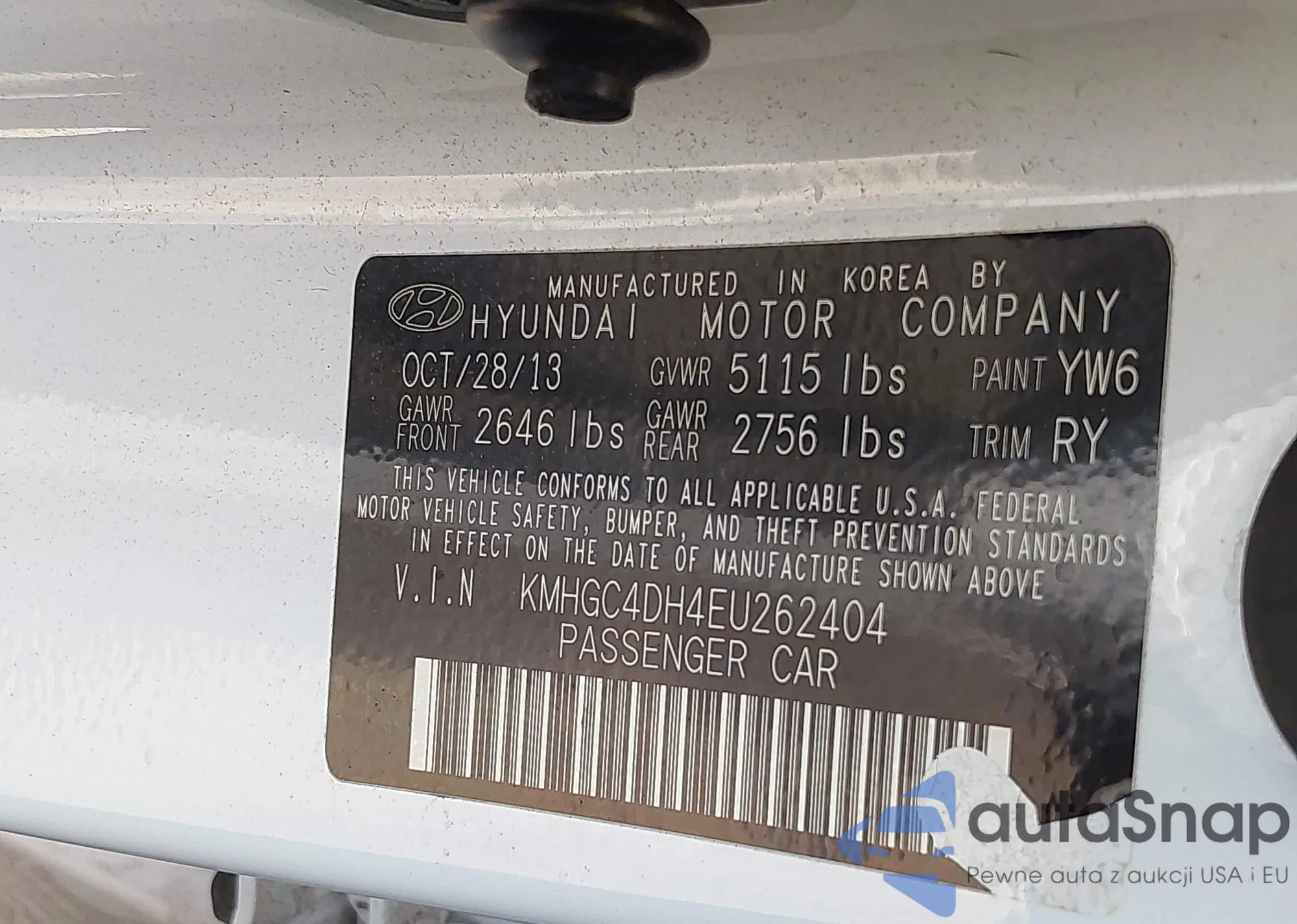 LOT: 43033241 VIN: KMHGC4DD4DU229396