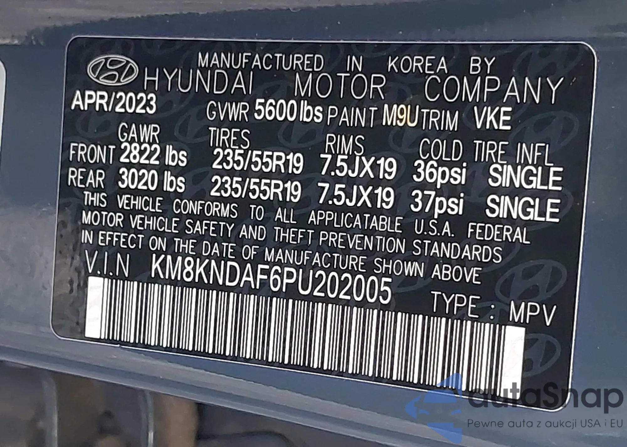 • VIN KM8KNDAF6PU202005