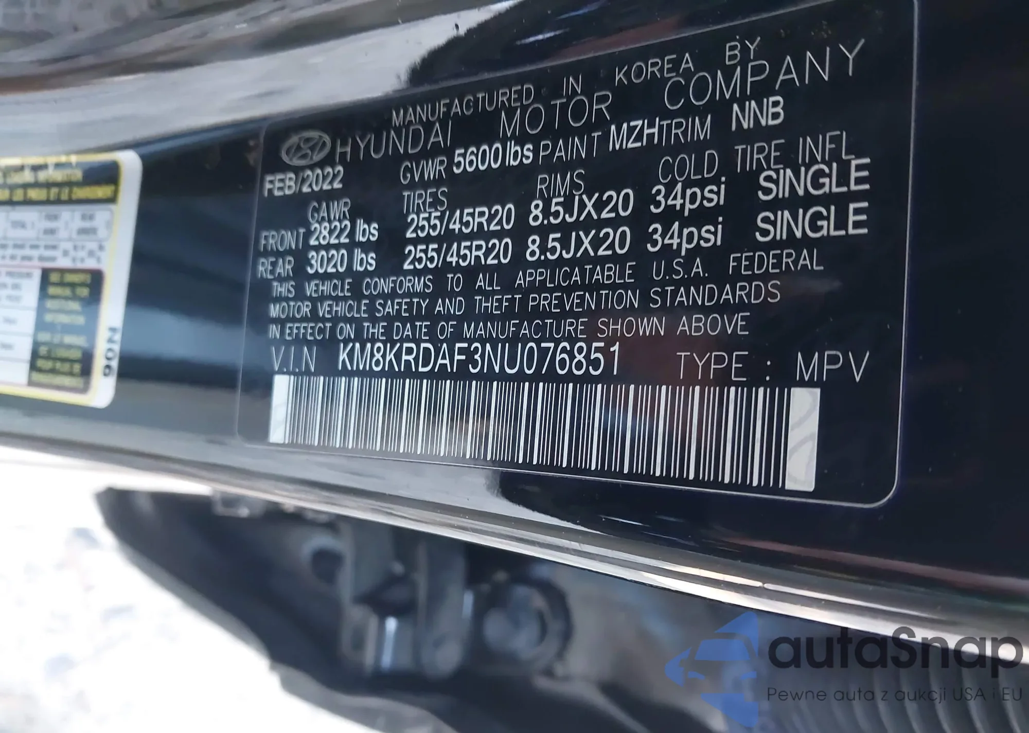 LOT: 44177677 VIN: KM8KNDAFXNU102373