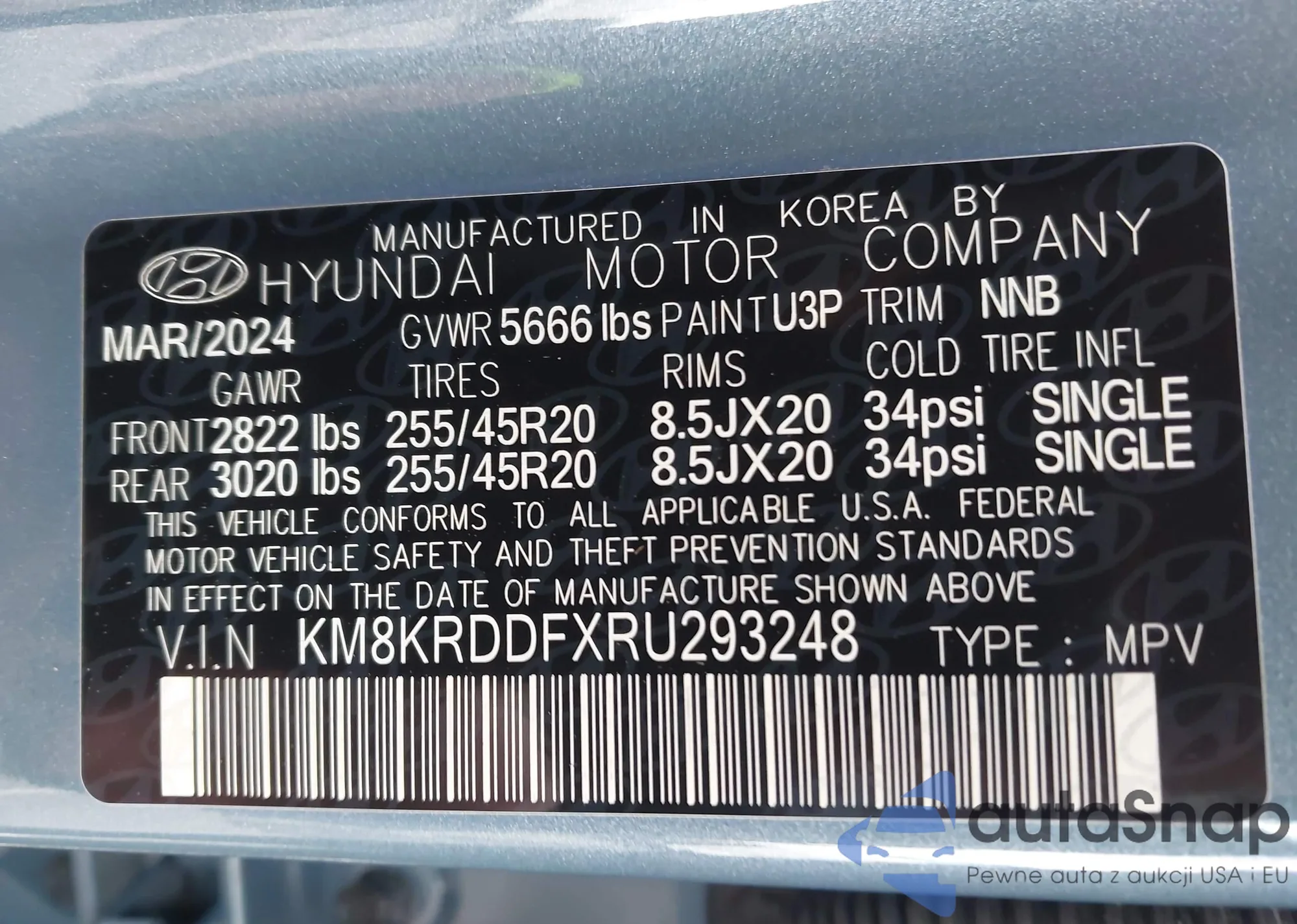 LOT: 43382690 VIN: KM8KNDAF3PU171960