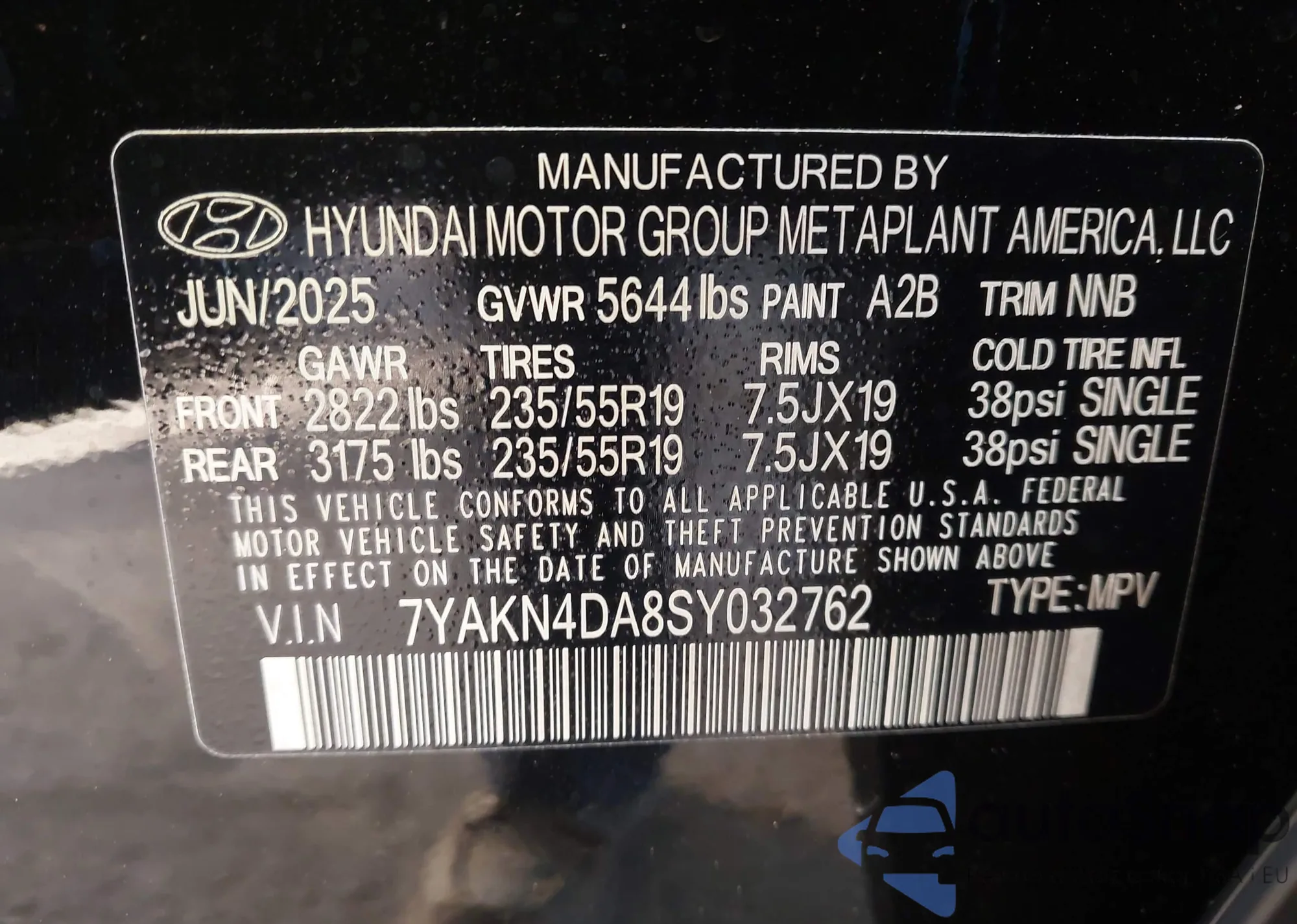 LOT: 95612345 VIN: KM8KNDAF8PU202913