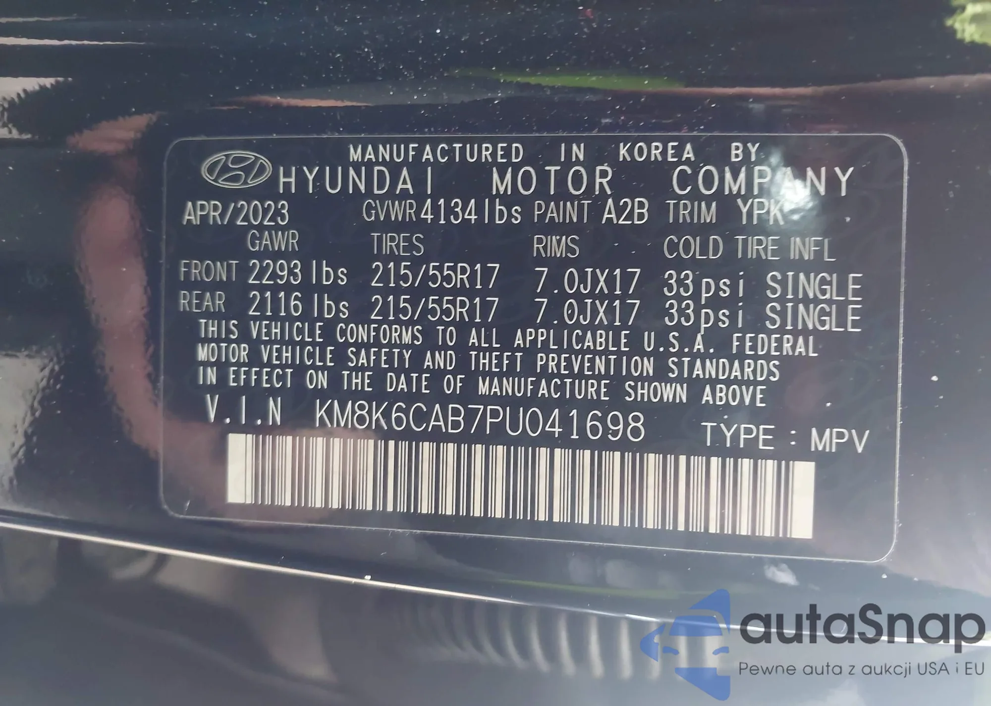 • VIN KM8K6CAB7PU041698